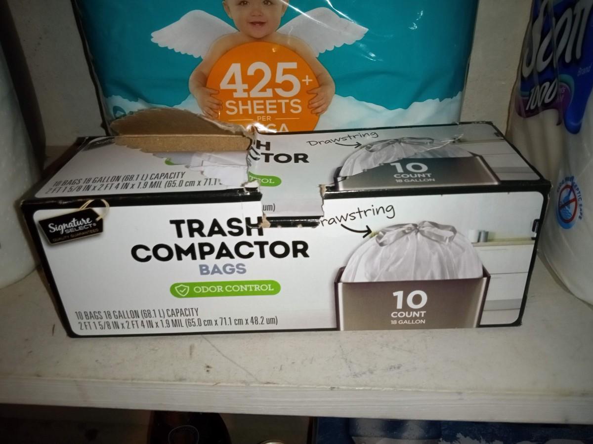INCLUDES A PARTIAL BOX OF TRASH COMPACTOR BAGS