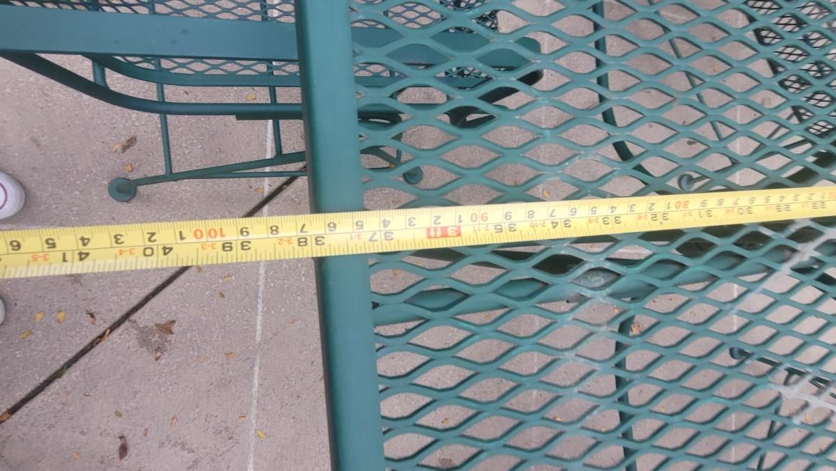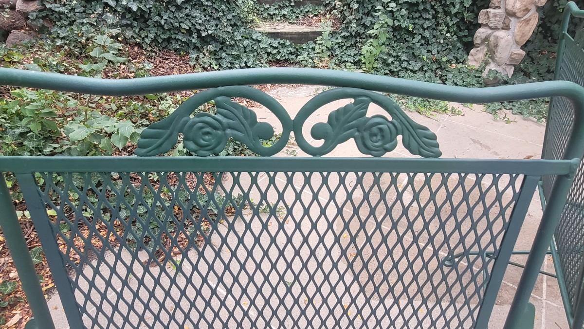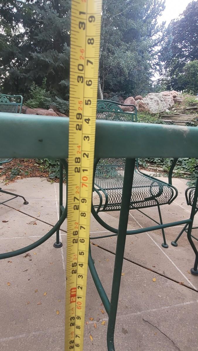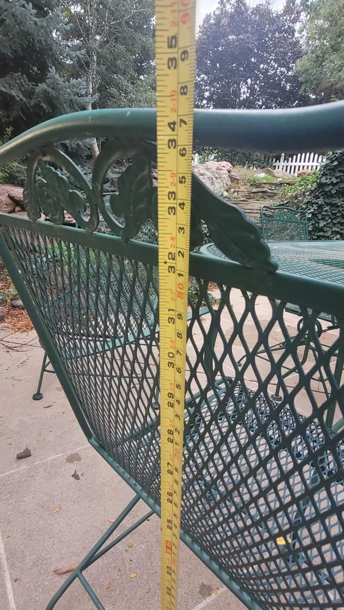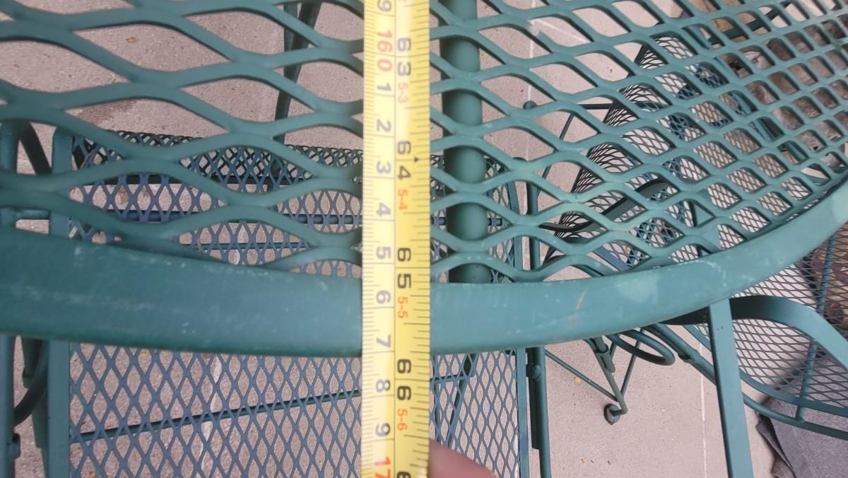Lot 397: Green Metal Oval Patio Table & (6) Bouncer Chairs