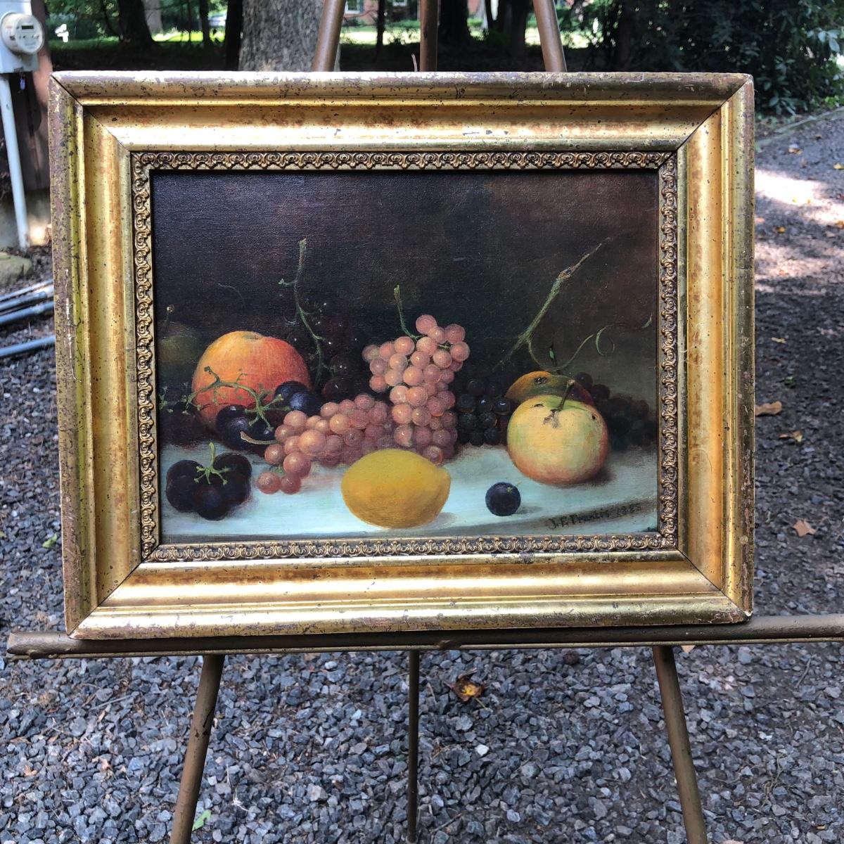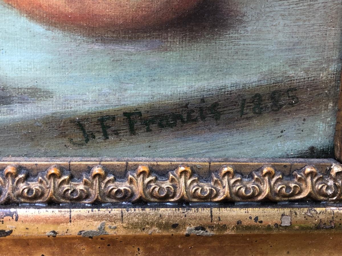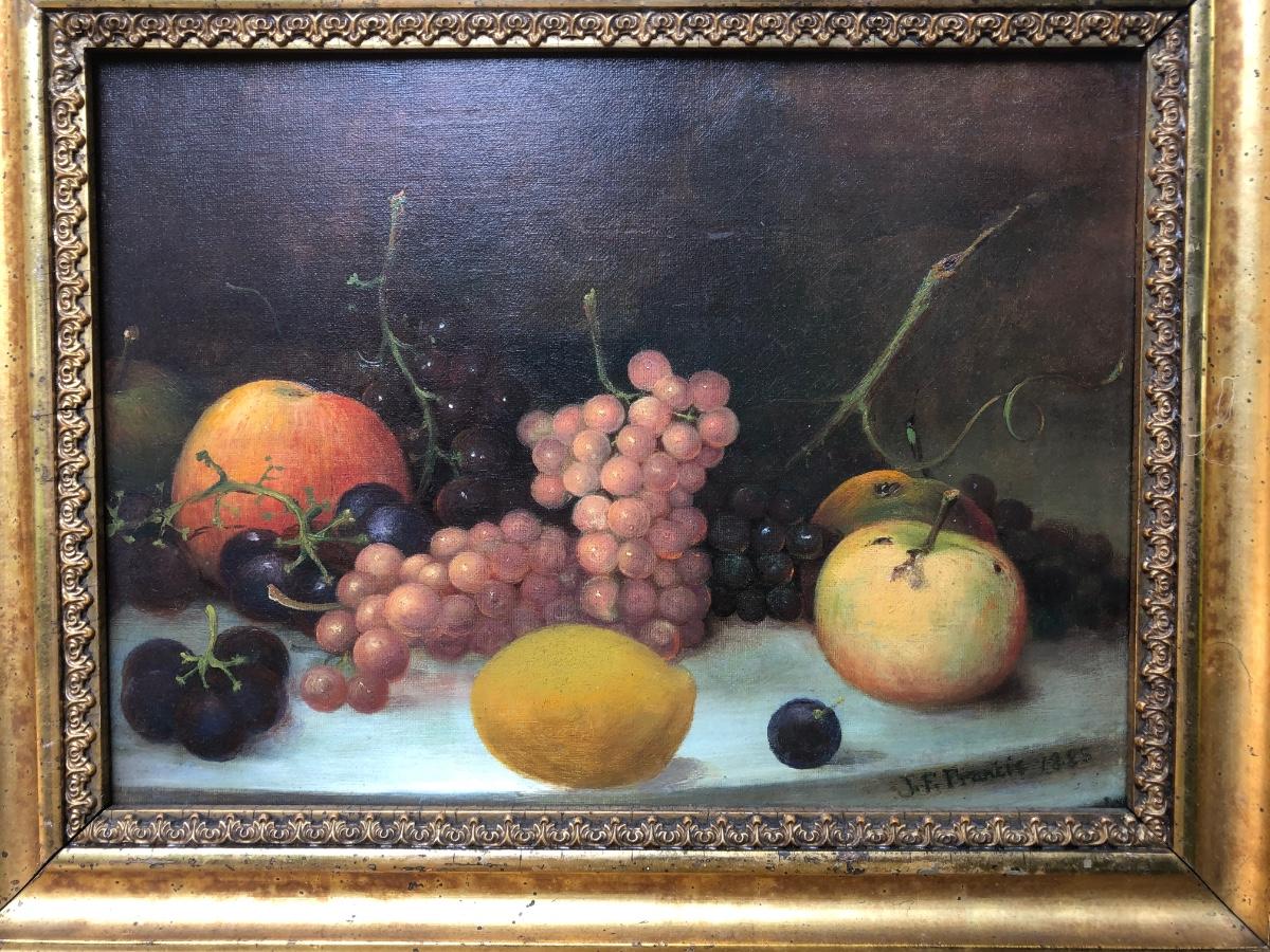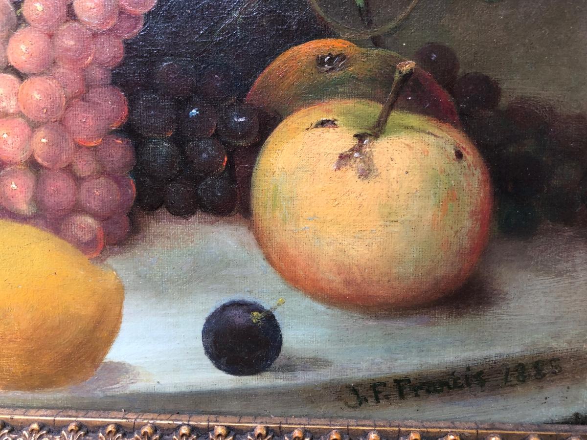 LOT 397G: Antique 1885 Signed Fruit Still Life Oil Painting by John F. Francis (American 1803-1886)