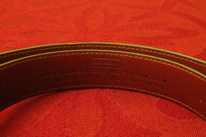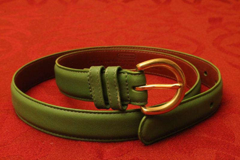 LOT #398: COACHâ„¢ Green Leather Women's Belt SIZE LARGE