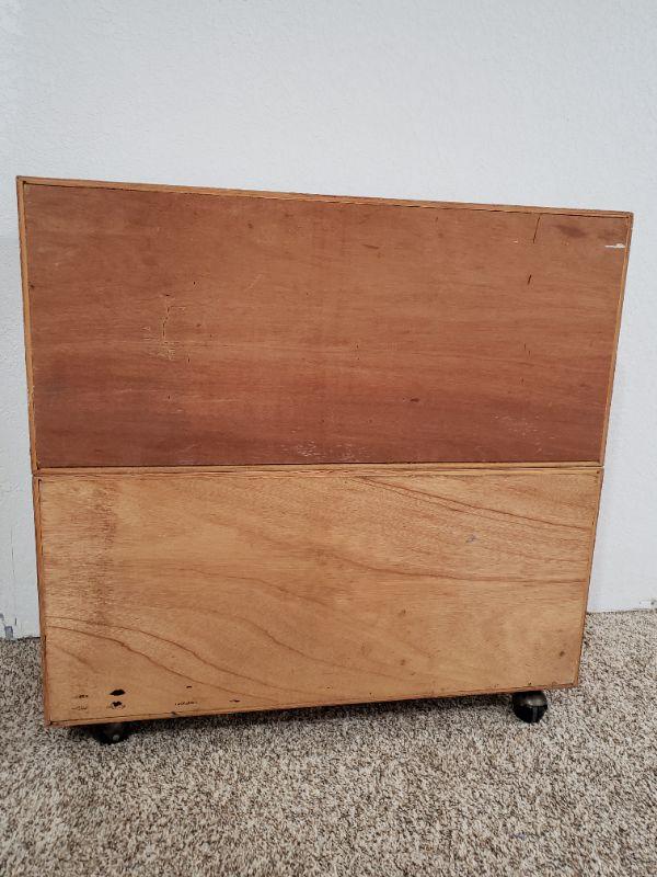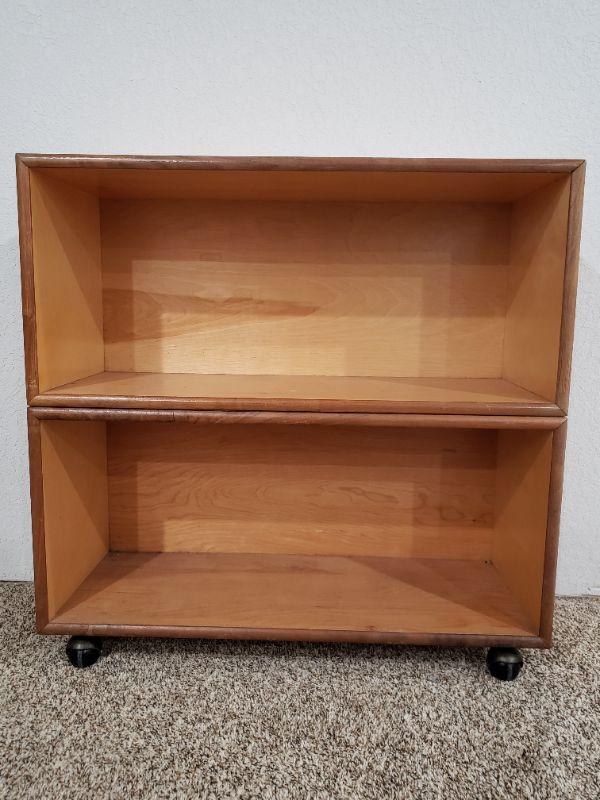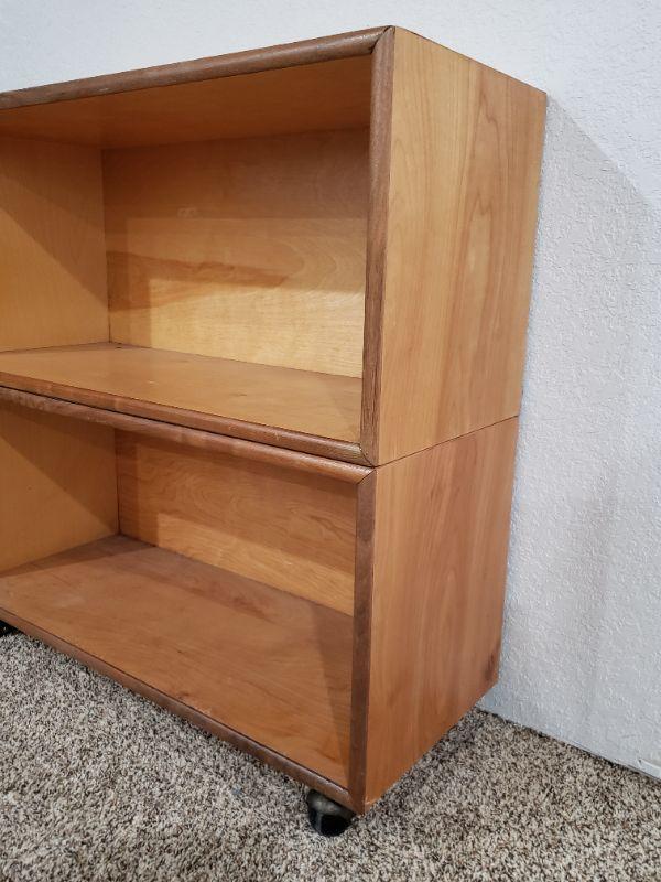 Lot 398: Mid Century Wood Shelf with Casters