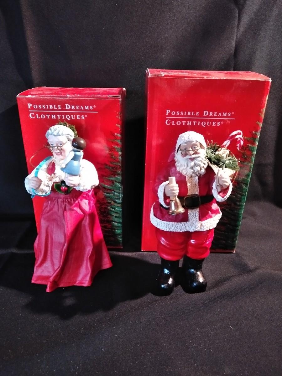 6.5" POSSIBLE DREAMS CLOTHTIQUES SANTA CLAUS AND MRS. CLAUS FIGURES.