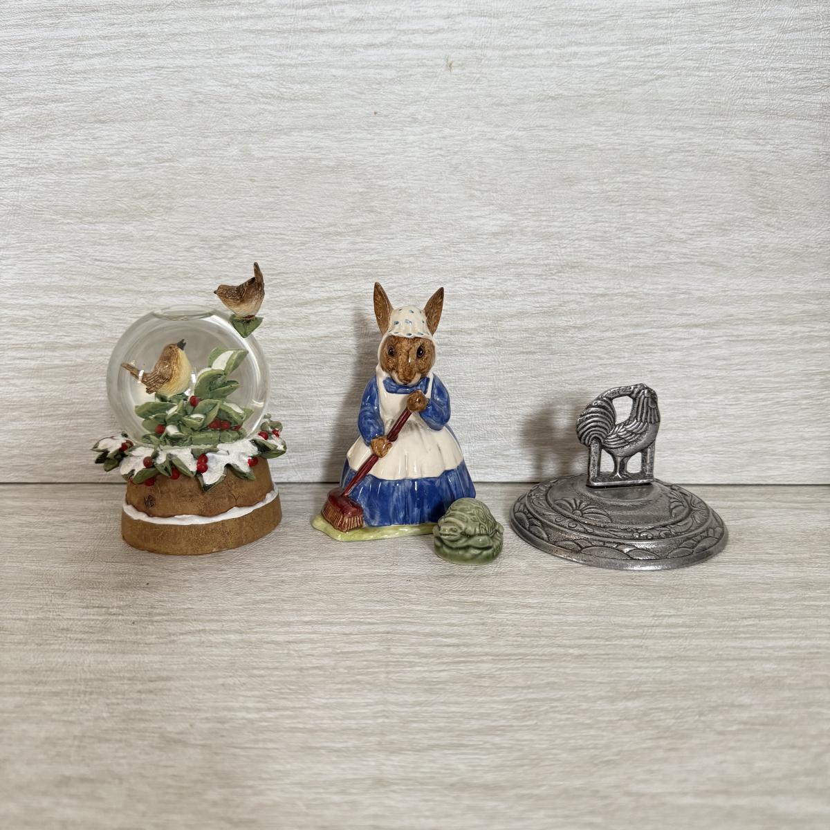 LOT 398K: Vintage Royal Doulton “Mrs Bunnykins: Clean Sweep” Bone China Figurine, Wade Whimsies Turtle, Hallmark Cardinal Snowglobe & More