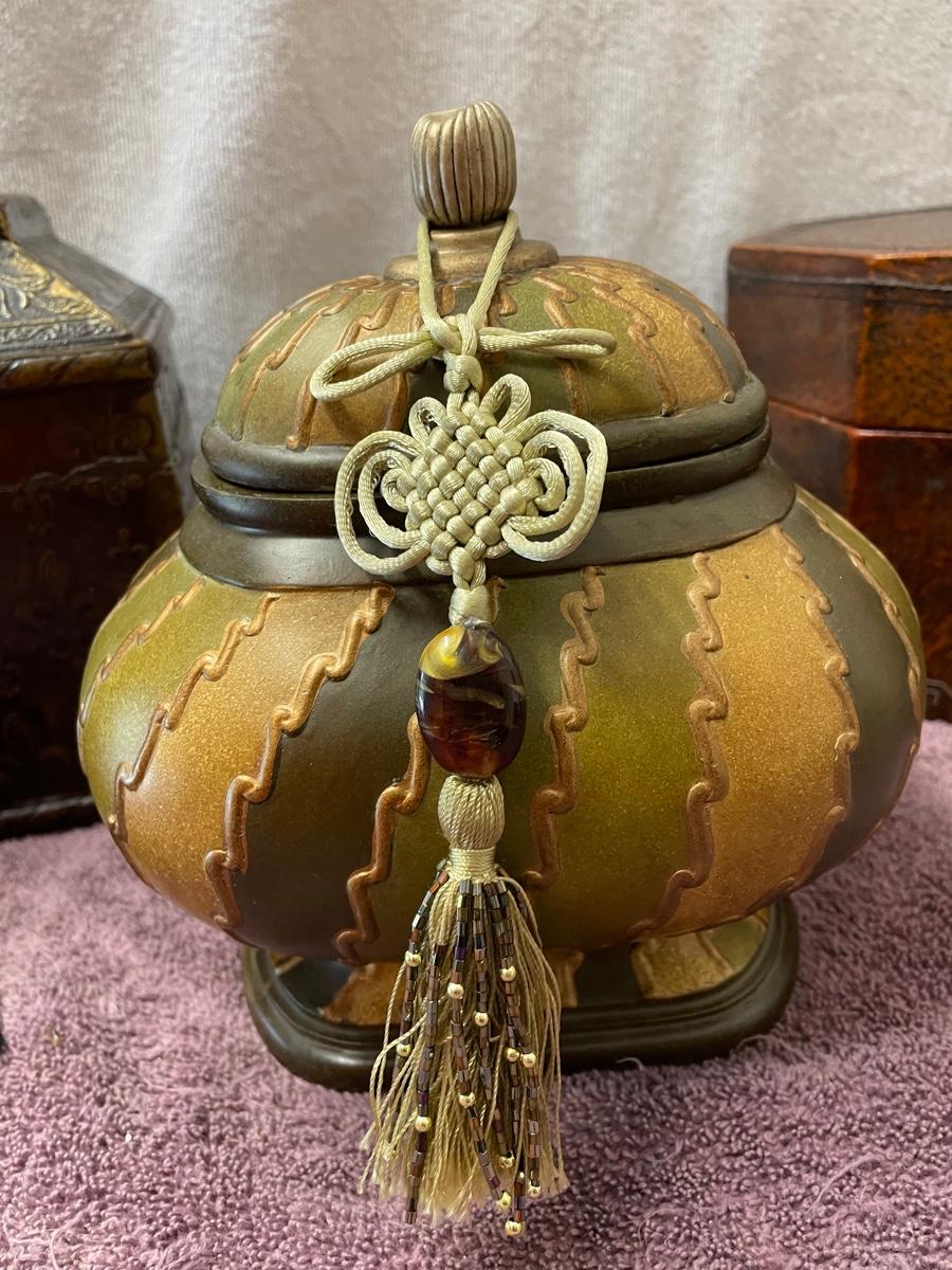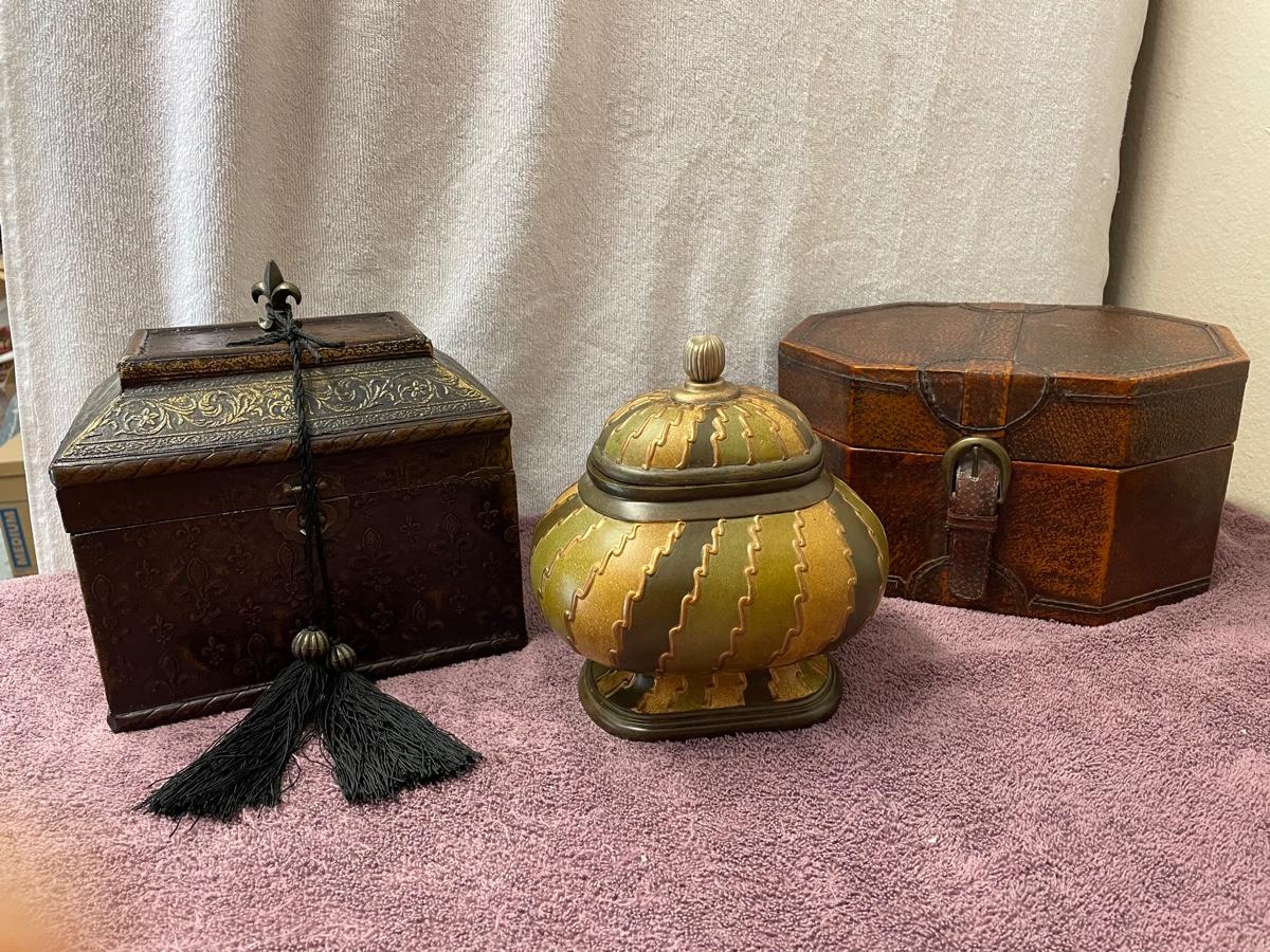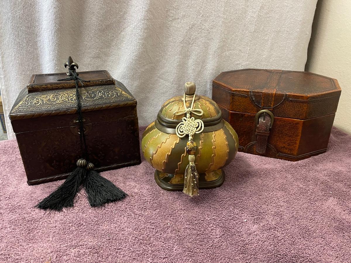 Lot 399  3 Piece Decor Set: 2 Boxes and 1 Round with Lids