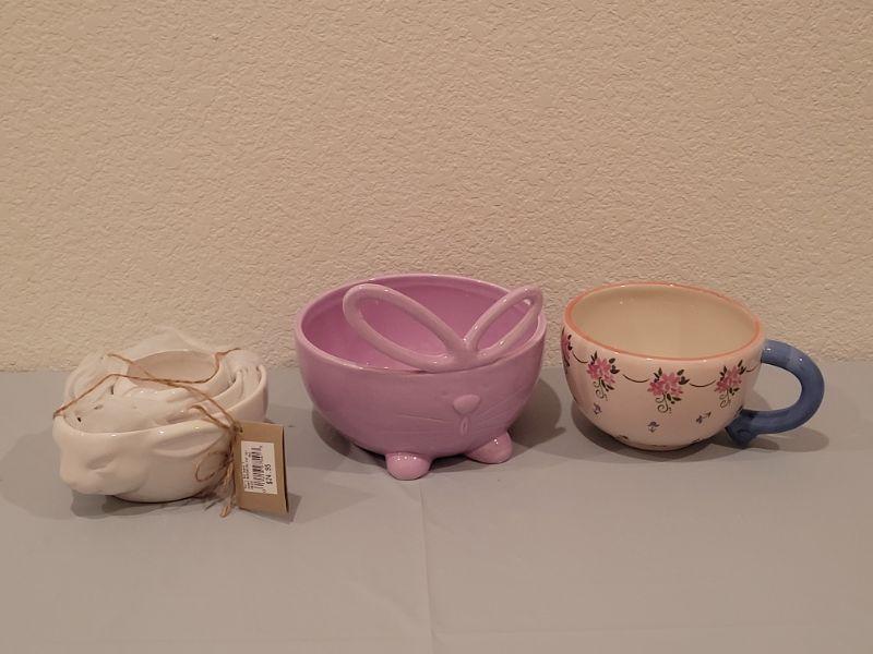 Lot 399: New  Bunny Measuring Cups, Bunny Bowl and Latte Cup