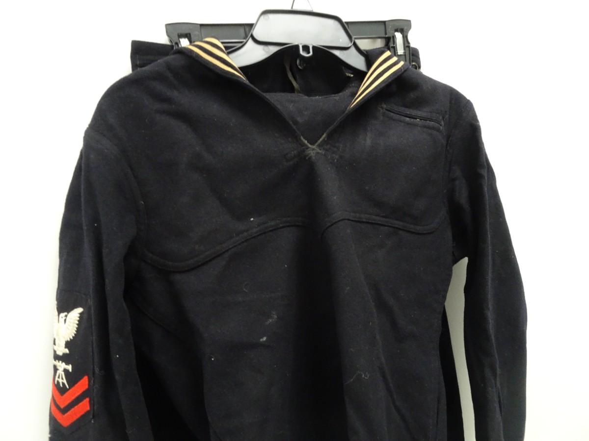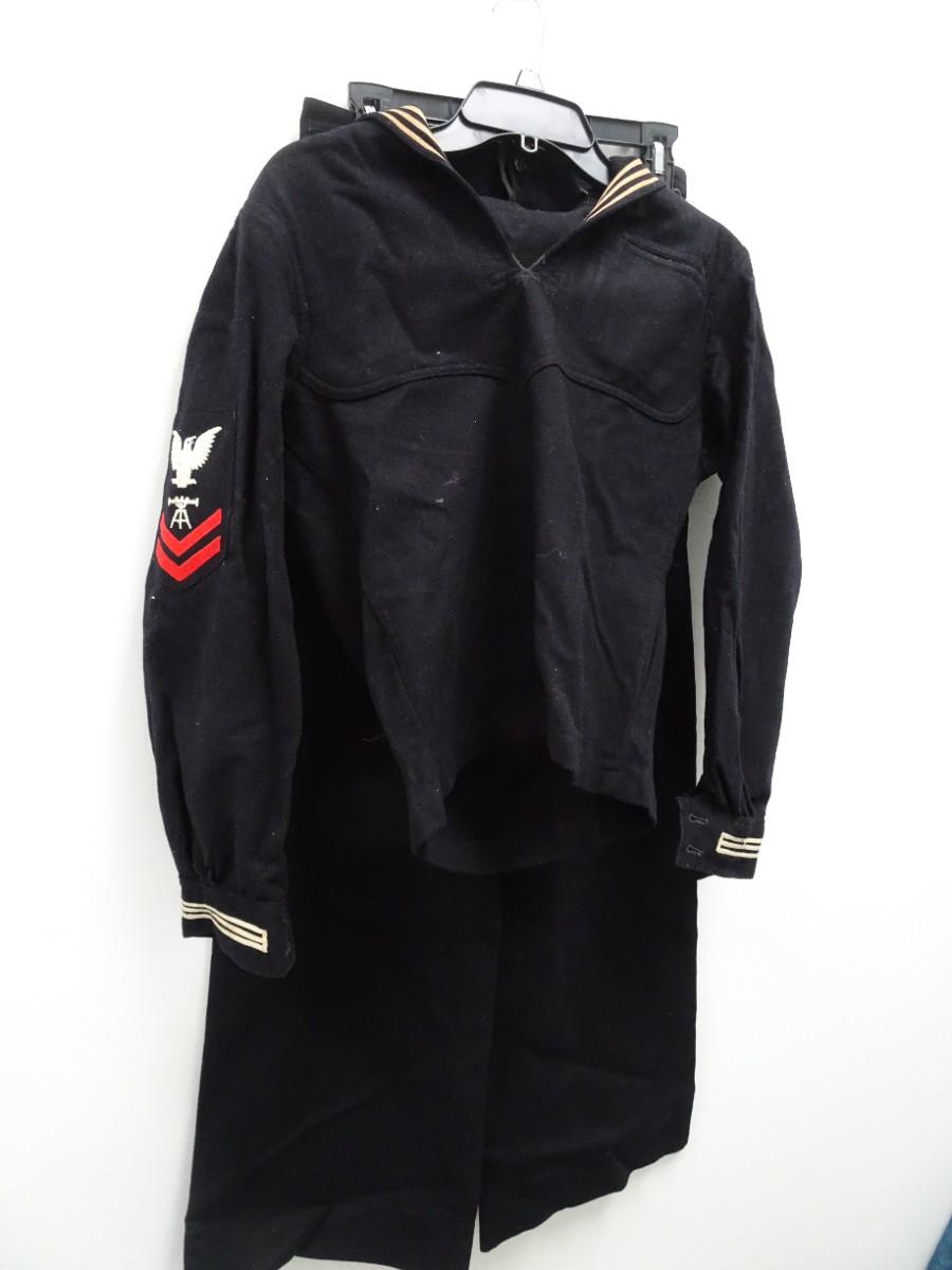 LOT 399. VINTAGE NAVY WOOL UNIFORM WITH 13 BUTTON PANTS