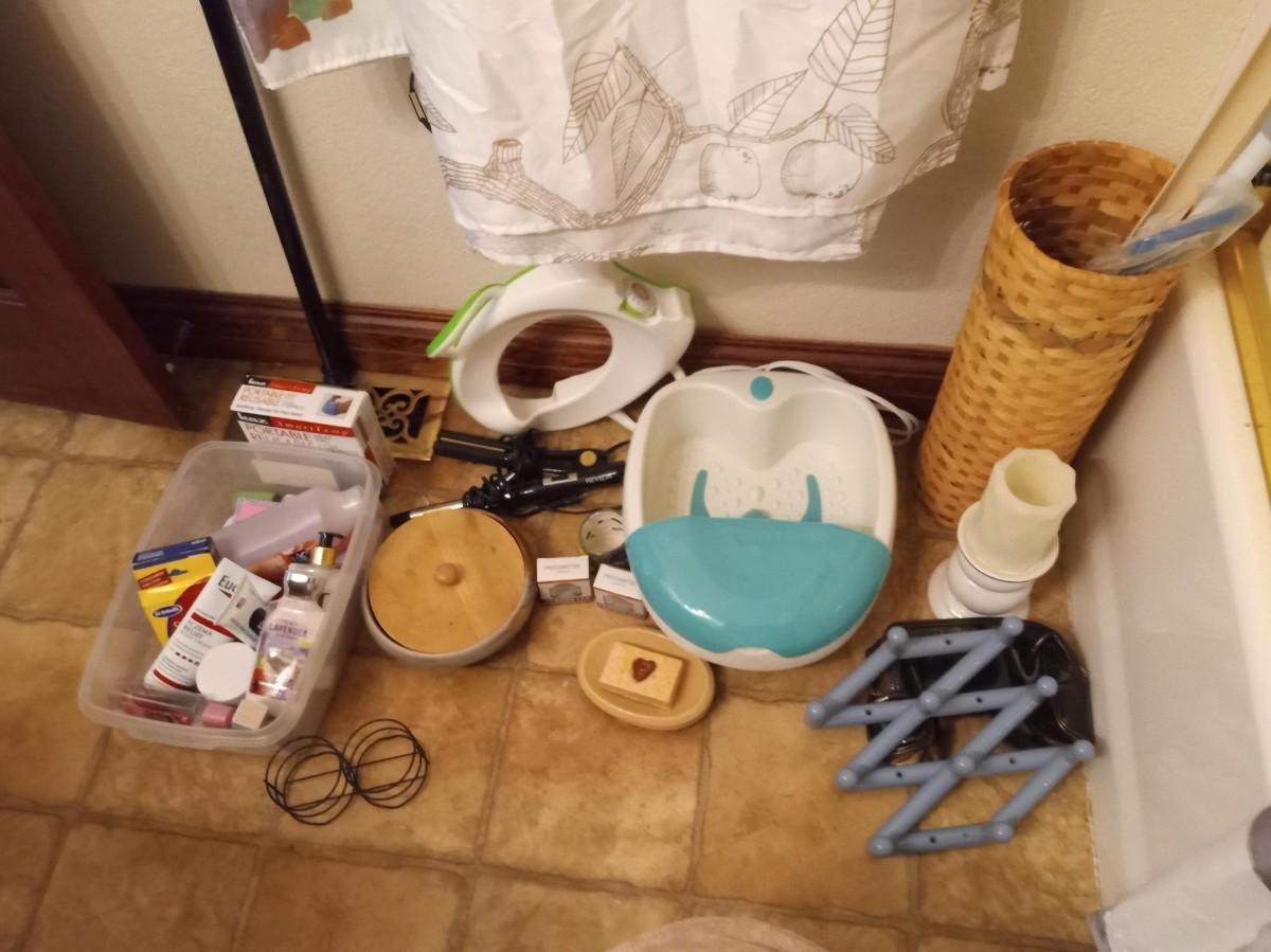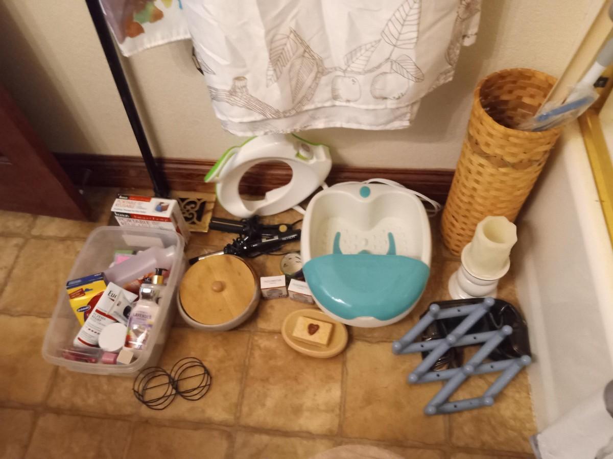 FOOT SPA, TOILETRIES, SHOWER CURTAINS, NEW PEDOMETERS, CURLING IRONS, TODDLER TOILET SEAT, CLAY BOWL AND MORE
