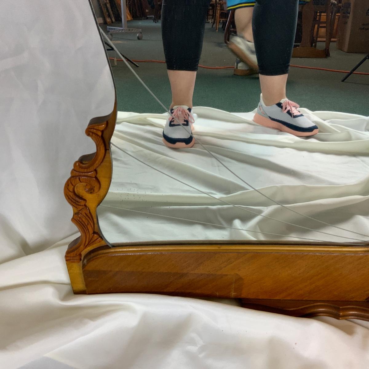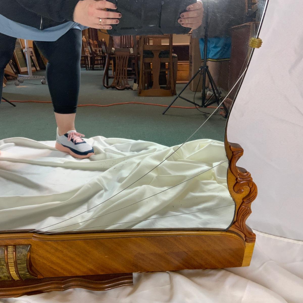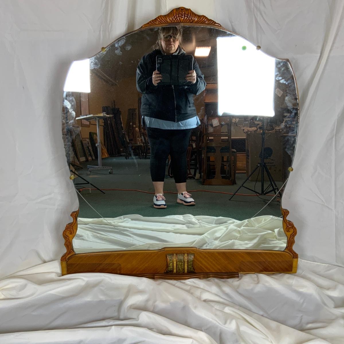 Art Deco Vanity Mirror. Lovely base frame. //::\\ Please see photos for details and condition. No attempt has been made to hide any imperfections. All items listed in this auction are warehouse items, and need to be cleaned. A majority of the items need restoration as well. All items are sold AS IS and WITHOUT GUARANTEE. If you are uncertain about an item, DO NOT BID. Due to the nature of this online auction in-person inspection is HIGHLY recommended. All Sales are FINAL. Pick Up Times are FIRM. Please confirm with your own schedule that you can pick up in the scheduled times listed in the Terms and Conditions. Any questions please message the auctioneer. DO NOT Contact The Harp Gallery.