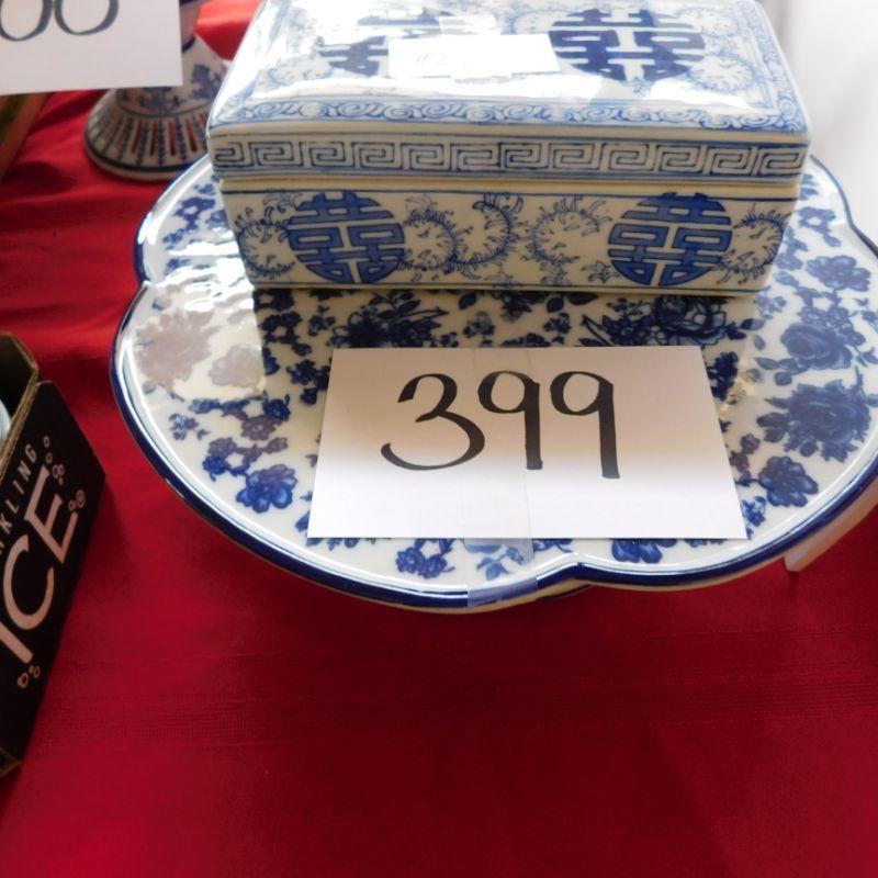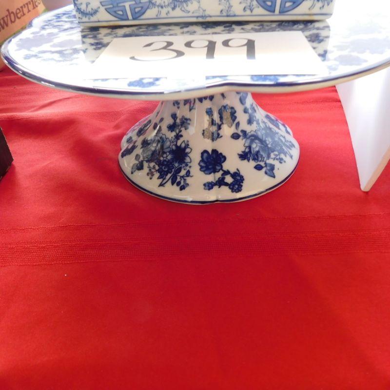 Lot 399 blue and white cake plate blue and white box with lid