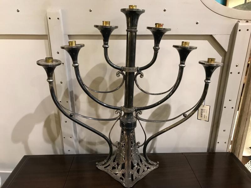 Lot 39-Antique Art Nouveau Seven Arm Silverplate Candelabra/Menorah