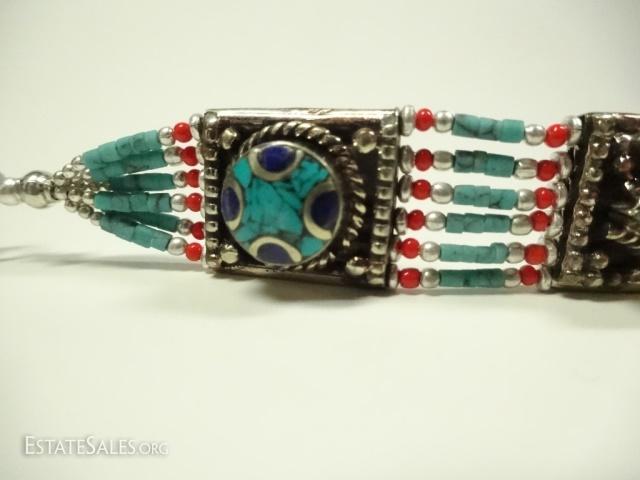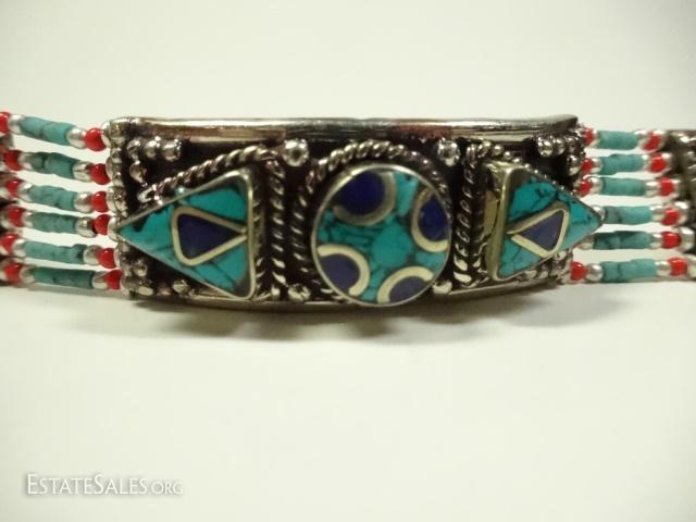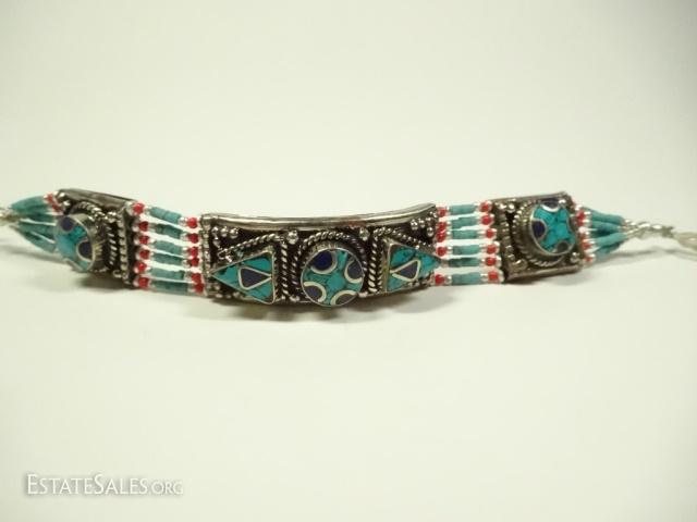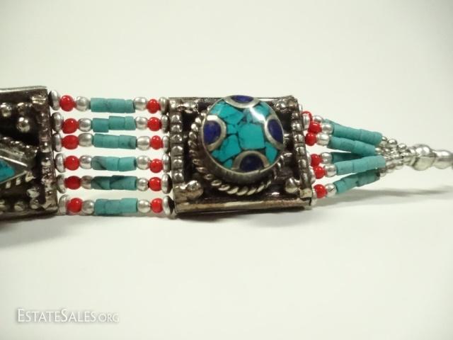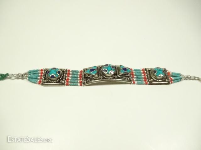 LOT 39B: TURQUOISE, LAPIS & CORAL BRACELET, APPROX 7.25"L