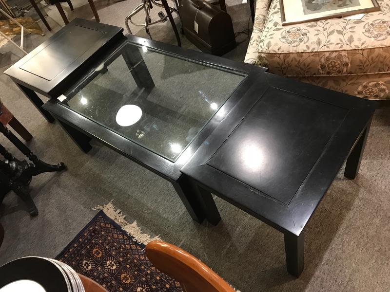 Lot 3-Set Black Wood End Tables and Coffee Table