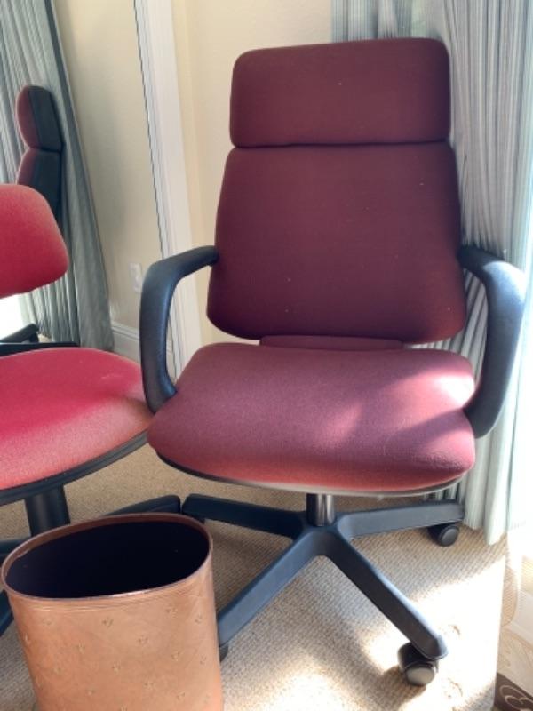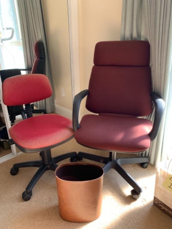 Lot 3U. Pair of office chairs, one trash can--$30