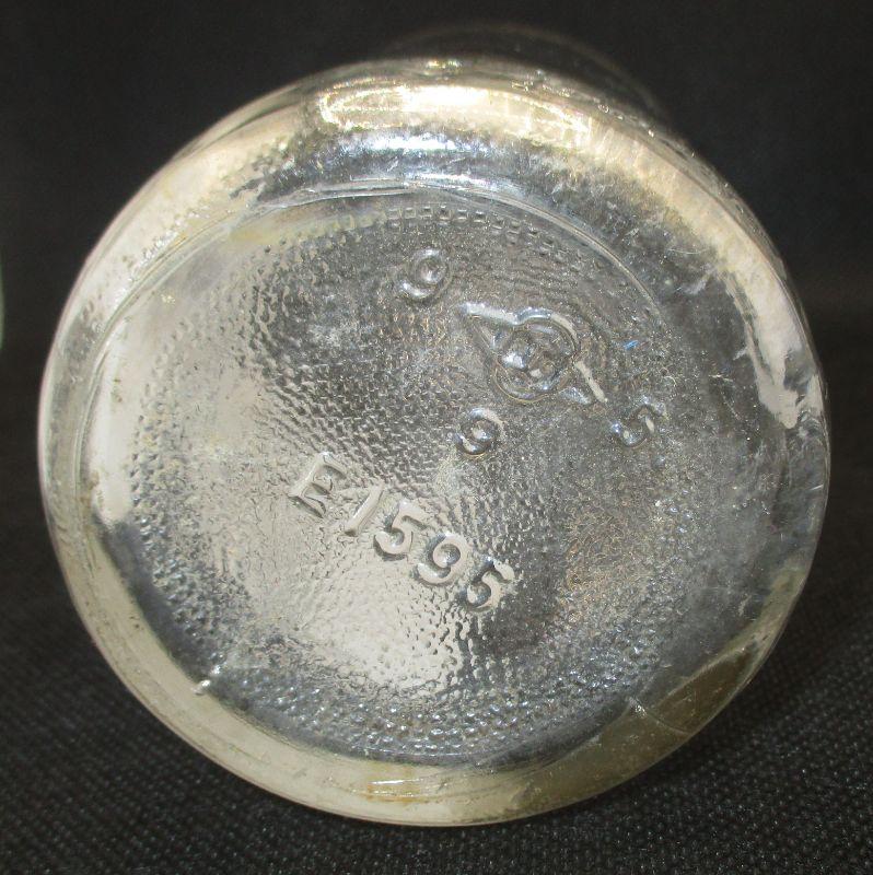 There is a 5 with a dot just to the right of the diamond/oval/I marking on the bottom of the bottle indicating (if I understand the bottle markings correctly) that this bottle was made in 1945. It is in excellent condition - check out the paint! It stands about 7.25" tall. I would tell you to Google this, but I did and I couldn't find it.