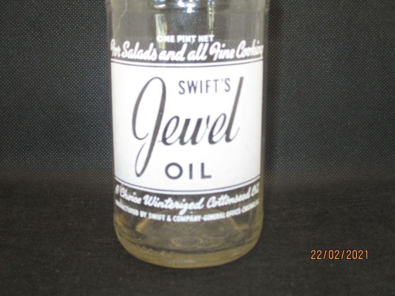Lot 4 - 1945 Swift's Jewel Oil Glass Bottle 1 Pint