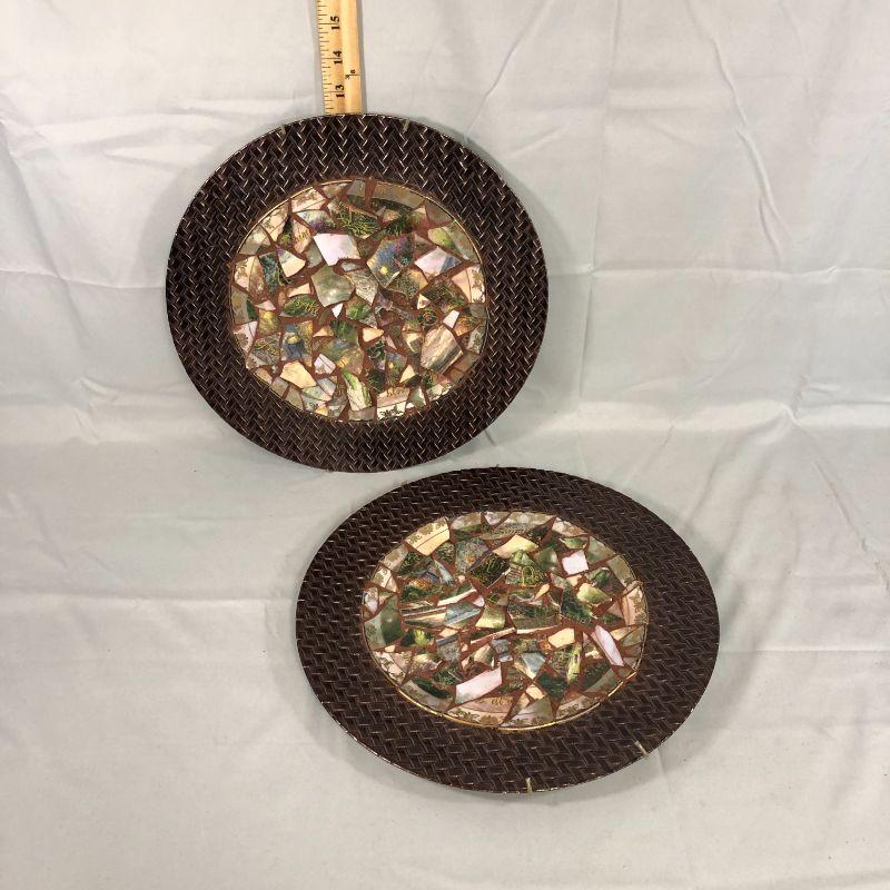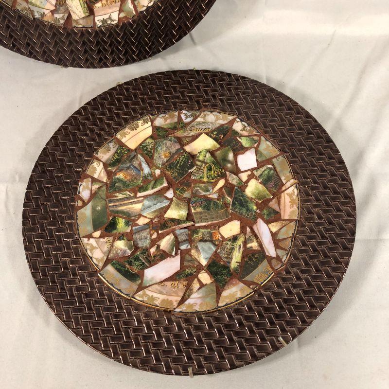 If you're a jigsaw type of person, then you'll be able to figure out most of the scene that was on the plates prior to the "re-purposing" part. The full size is 13" in diameter and they are in great shape.