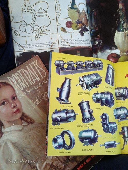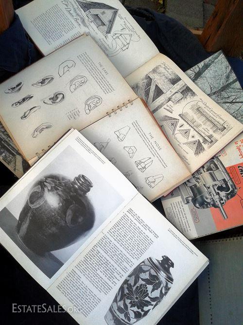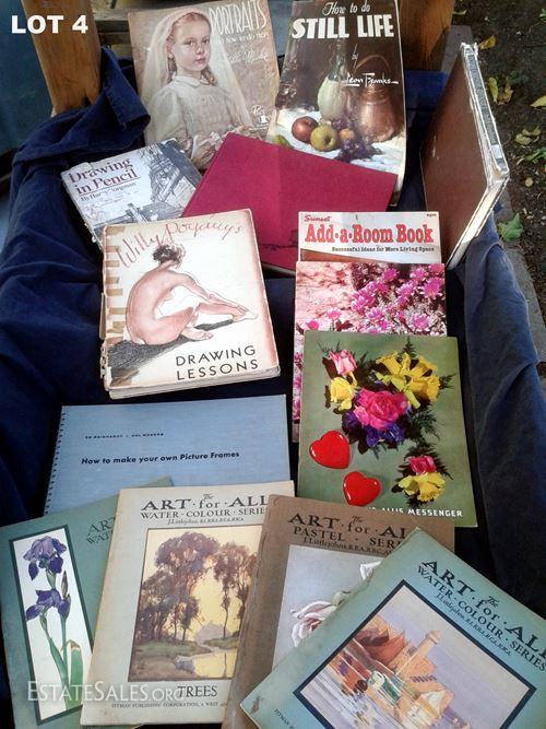 At first glance, Lot 4 is for those with an interest in learning how to draw, paint, build or collect. Turns out if you have any interest in design, art history or pop culture, you might get a kick out of this as well. This surprise book box is a veritable one stop art class with instructional publications teaching you to draw portraits and objects in pencil; build picture frames; paint still life and water colors; collect Chinese antiques and become a master barnsmen of US barn types. All items are beautifully illustrated, rich in color and detail, and written in a voice all but forgotten to most if not all of us. The unfortunate side is that all books and items have suffered some sort of severe setback resulting in a less than ideal sale condition (see photographs). Hardbound books have become warped and bent; book covers and bindings have deteriorated, ripped off or broke; some have suffered moisture/condensation mishaps and carry the water stain scars on their covers and across the crease of all pages; while others bear the burden of being "fixed" with tape only to become broken again and left with bruising never to go away. I am not even going to list the titles. No need to. There is truly great stuff in this box if the right person takes the time to look; the items may not be shiny and new and sparkly, but they are entertaining, enlightening and full of old ideas and ways of doing things. For the right person, this is the best thing at the sale.