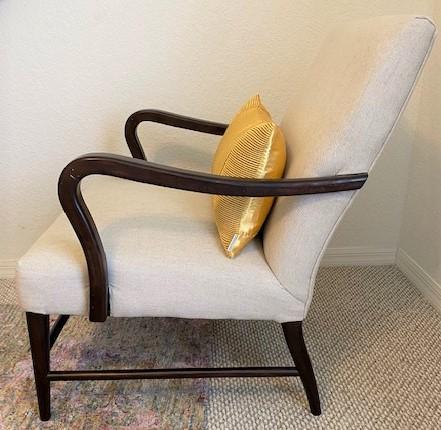 Pottery Barn. Off white canvas. With Accent pillow. Dimensions: 26 1/2"W x 16 1/2"H (floor to seat) x 34"H.