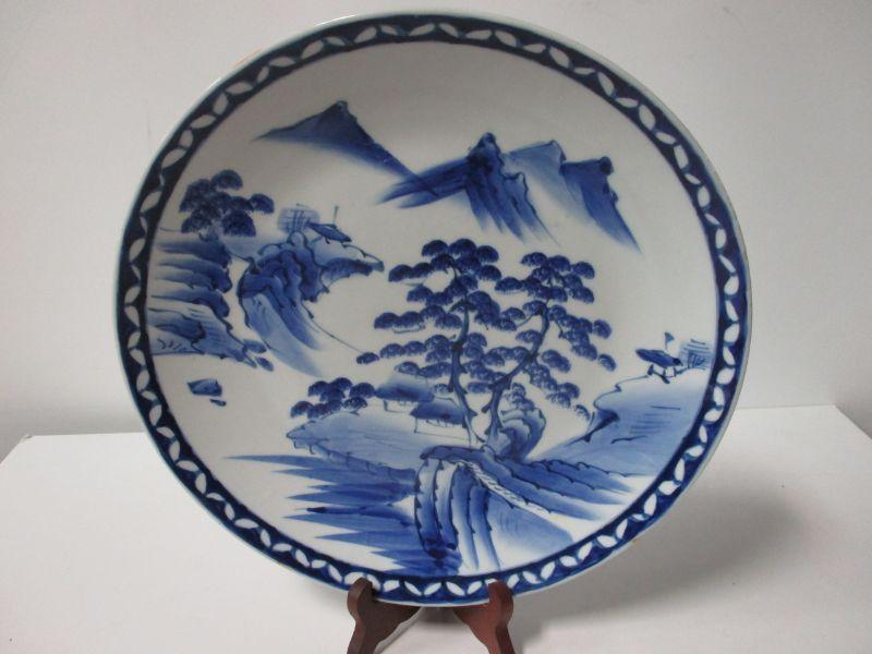 Lot 4 - Vintage Blue & White Chinoiserie Porcelain Plate Forest and Mountain Scape 12"