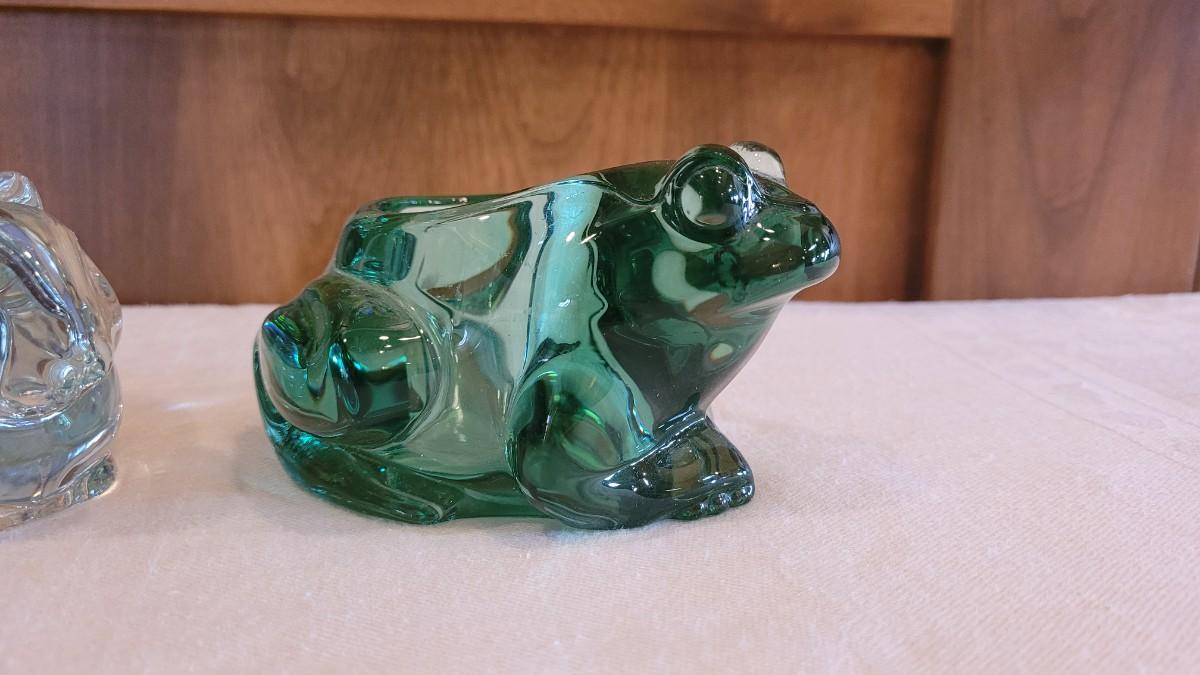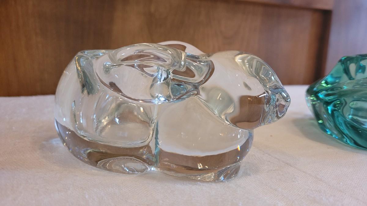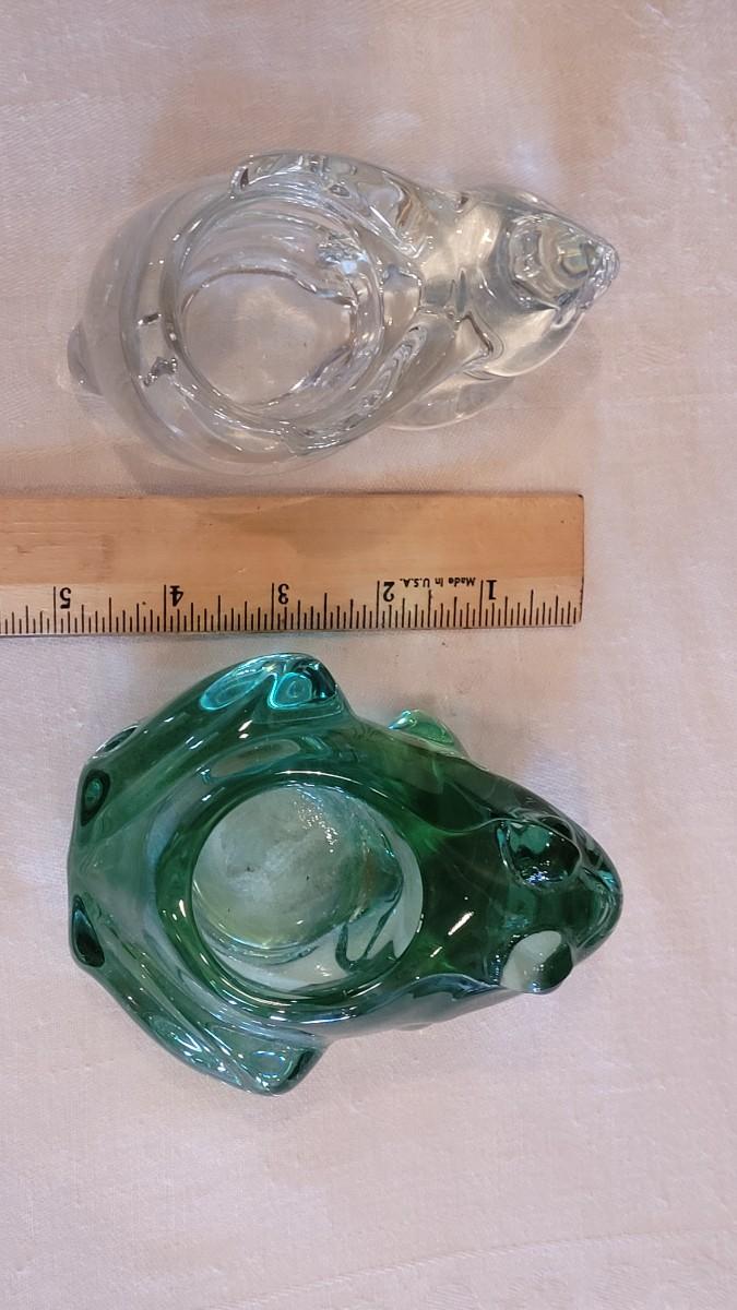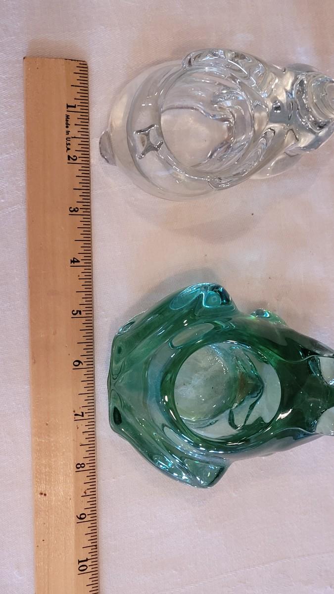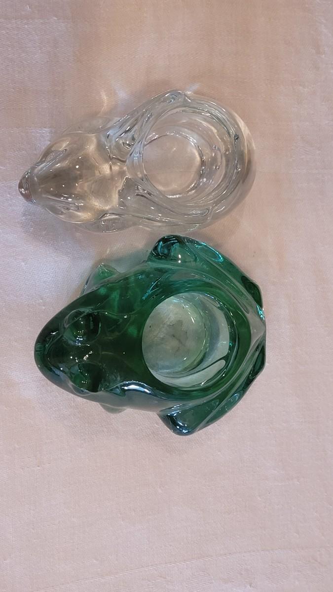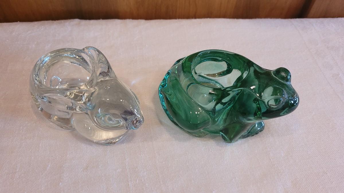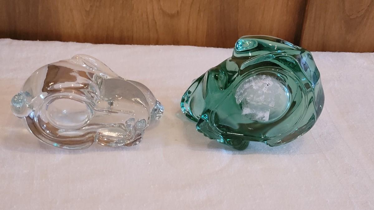 Lot 4: Green Glass Frog & Clear Glass Bunny Candleholders