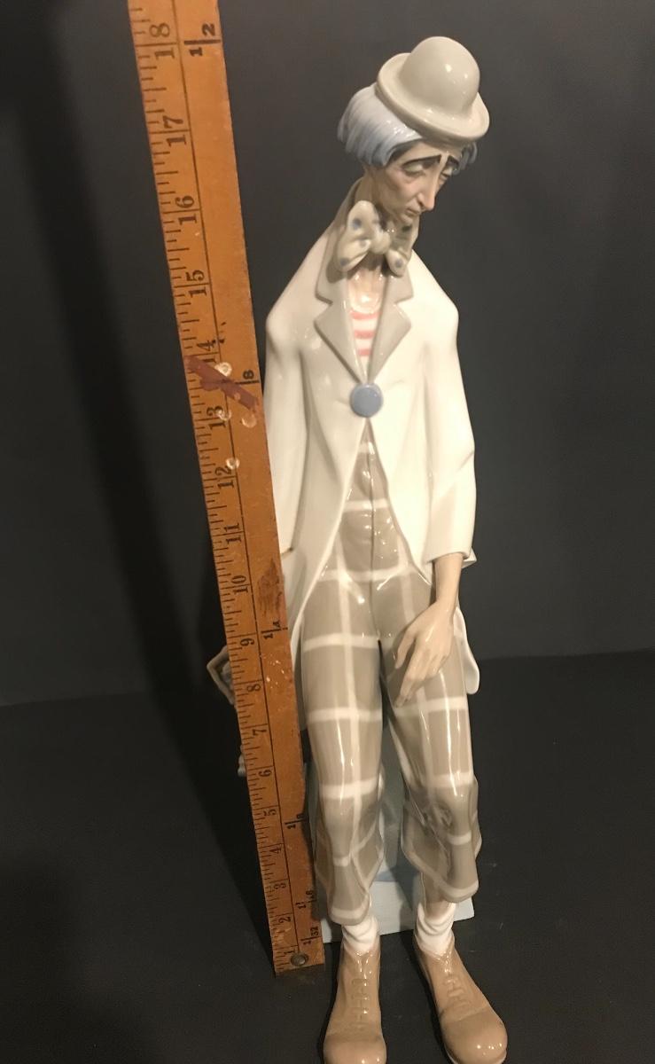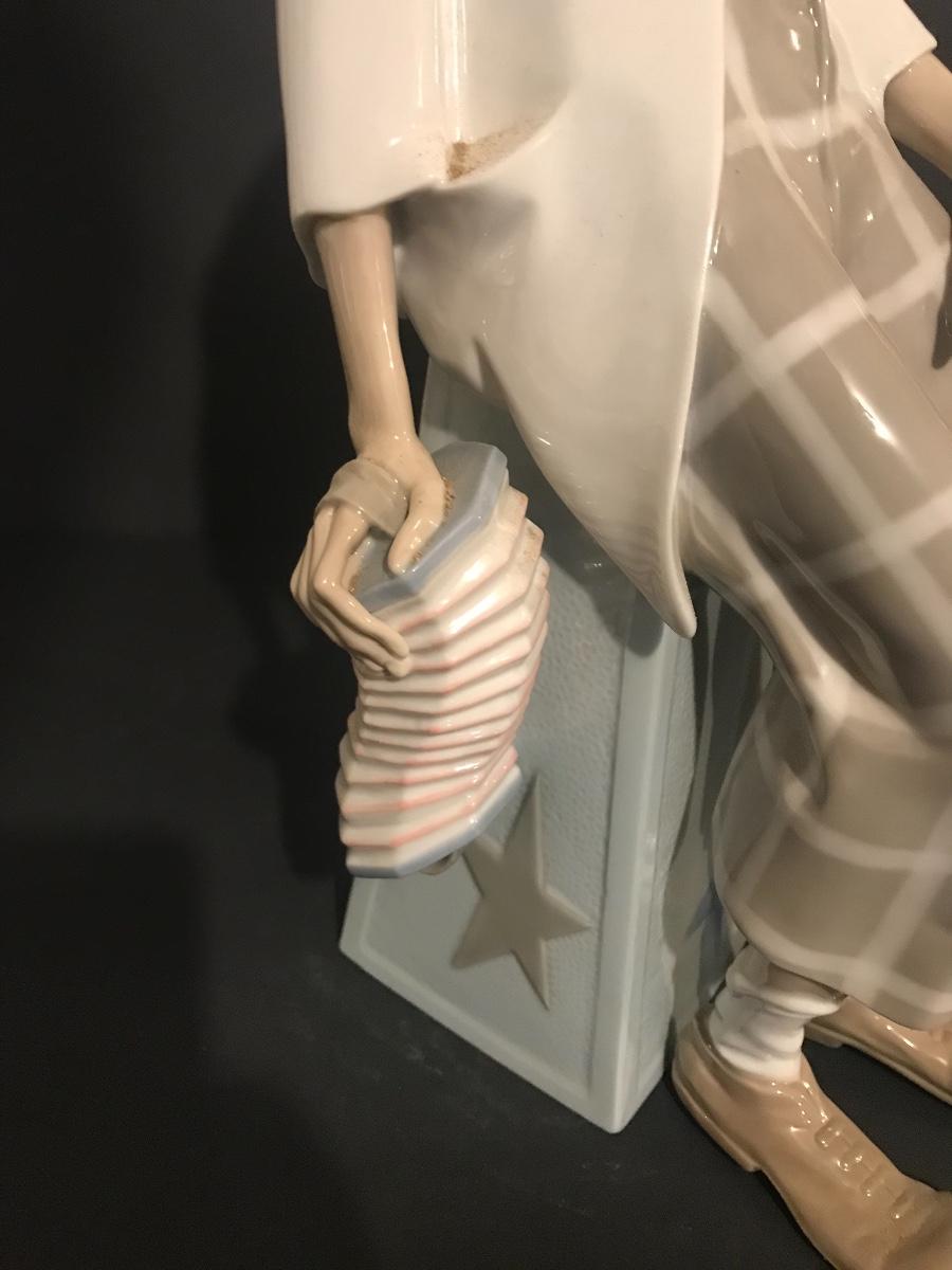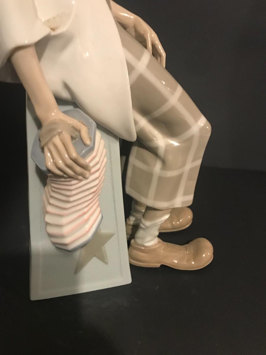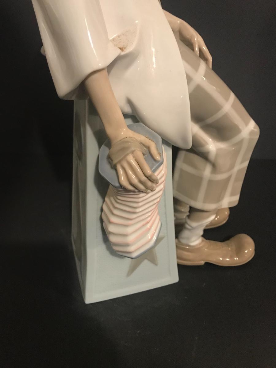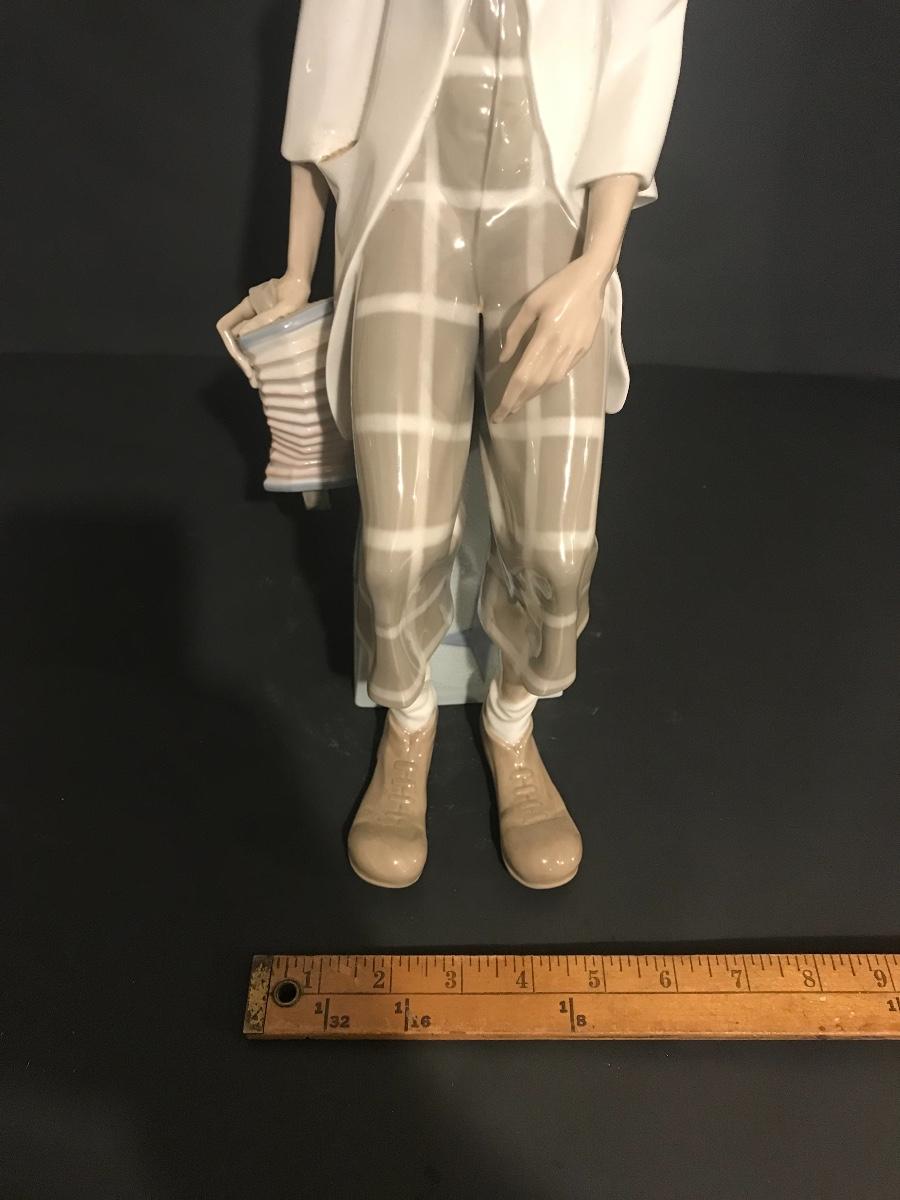 Clown With Concertina #1027. All Lladros are in excellent vintage condition without original boxes, except where noted. All items have been inspected and any damages or imperfections have been photographed and noted to the best of our knowledge and ability. It is the responsibility of the buyer to inspect all pictures, as they are the best representation of the items. The pictures show condition, measurements if taken, and what is included in the lot. Upon pickup, it is the responsibility of the buyer to inspect their items prior to leaving the premises. Once the items leave the premises, there will be no refunds or returns. Buyers are also responsible for bringing their own boxes and packing materials for their items. Thank you.