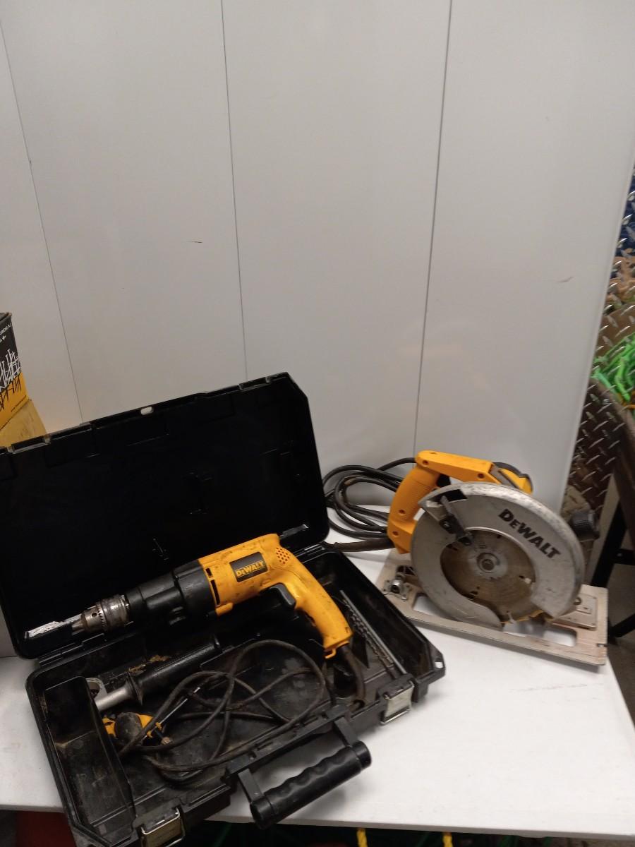 DEWALT 1/2" HAMMER DRILL AND DEWALT 8 1/4" CIRCULAR SAW