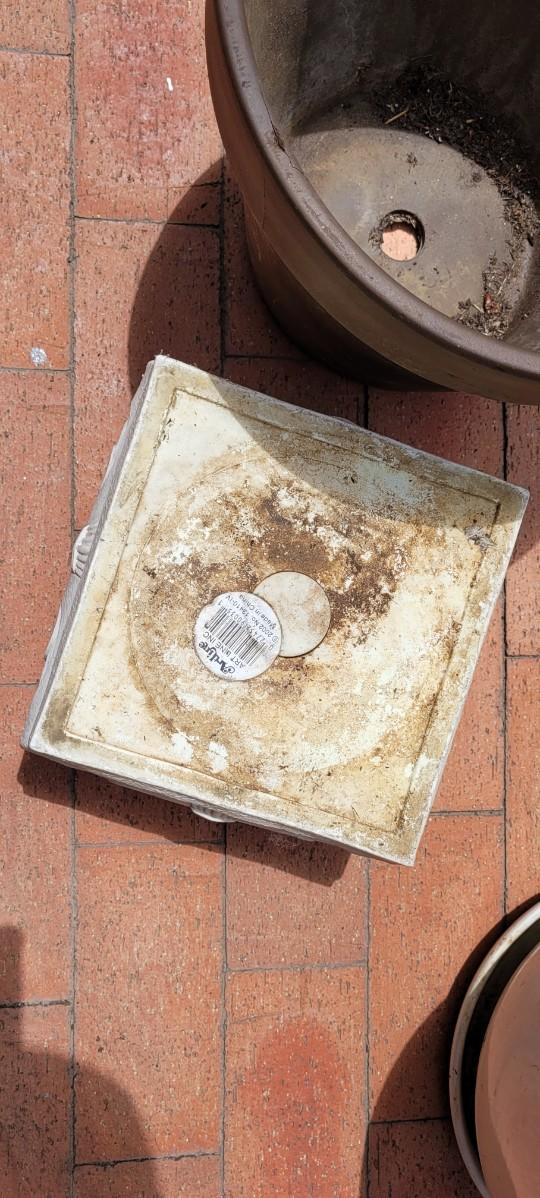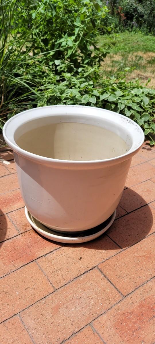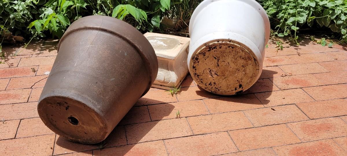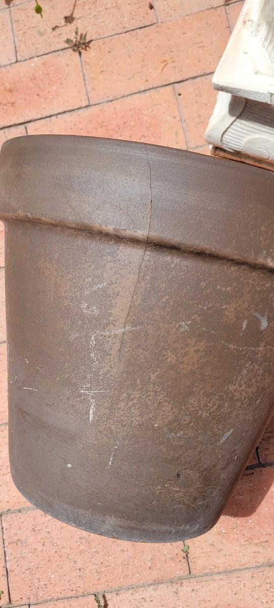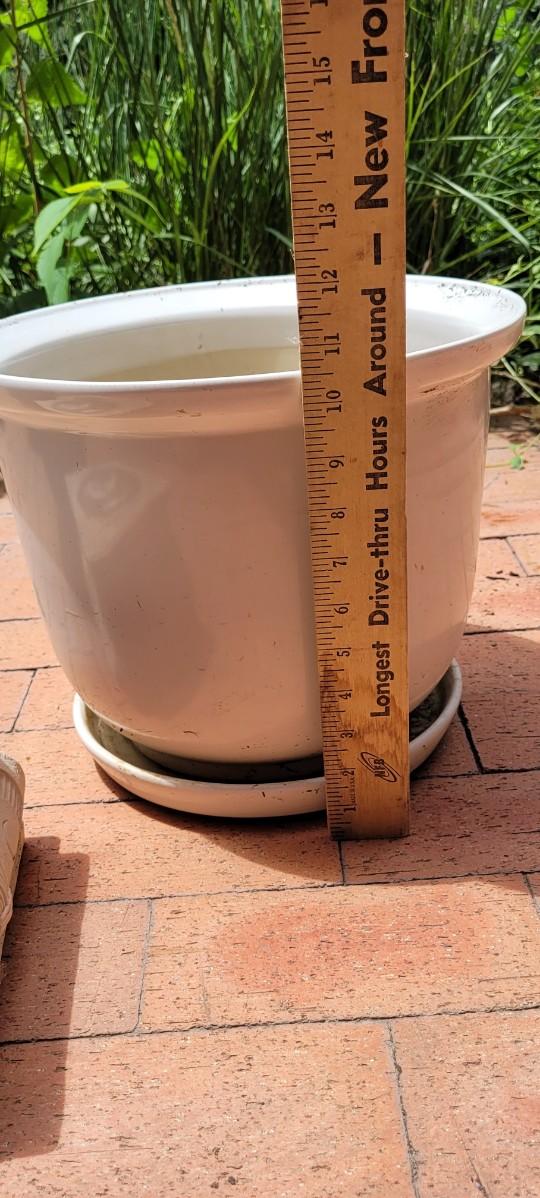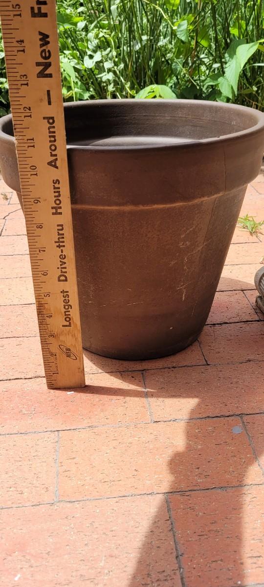 Both of the Flower Pots are heavy ceramic. The plant stand is a rubberized form of plastic.