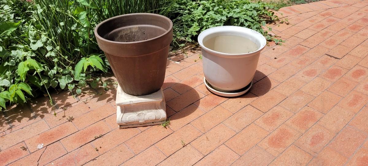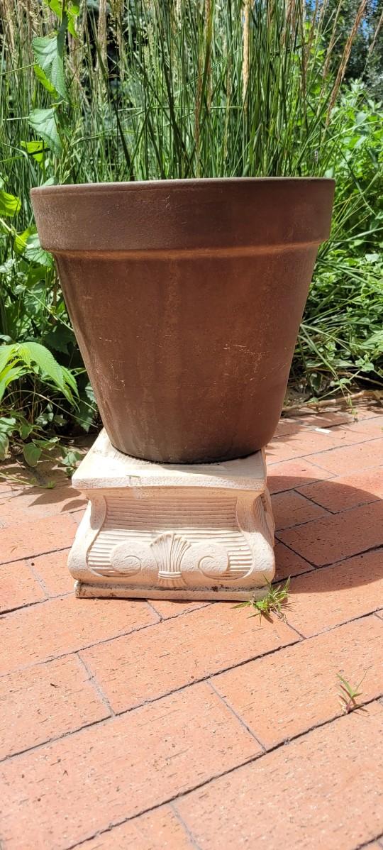 Lot 4: Group of (2) Flower Pots + Grecian Style Artificial Stand