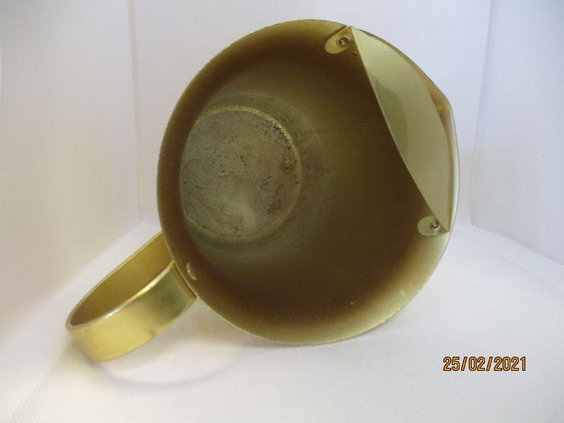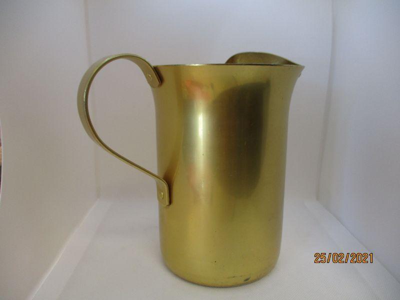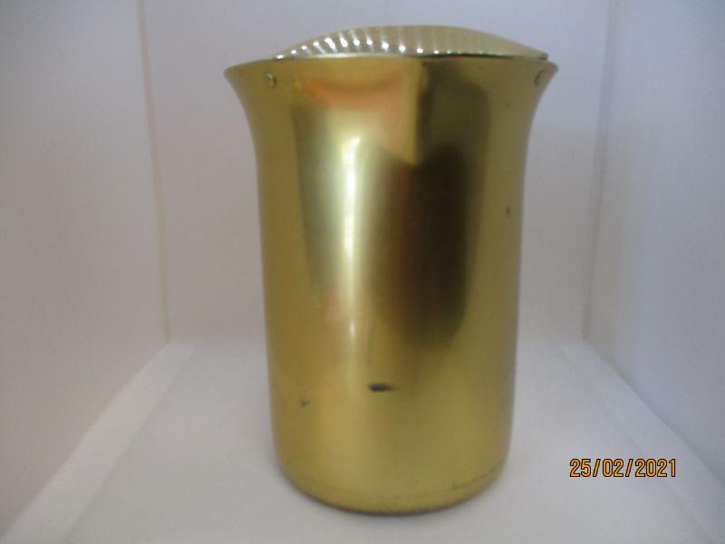 Super stylish 1960s-1970s aluminum water pitcher. It is not marked and has some scratches, but definitely still in great shape and usable. If you don't want to use it for liquid, it would look great with some wood kitchen utensils in it or wild flowers. It is 7.25" tall.
