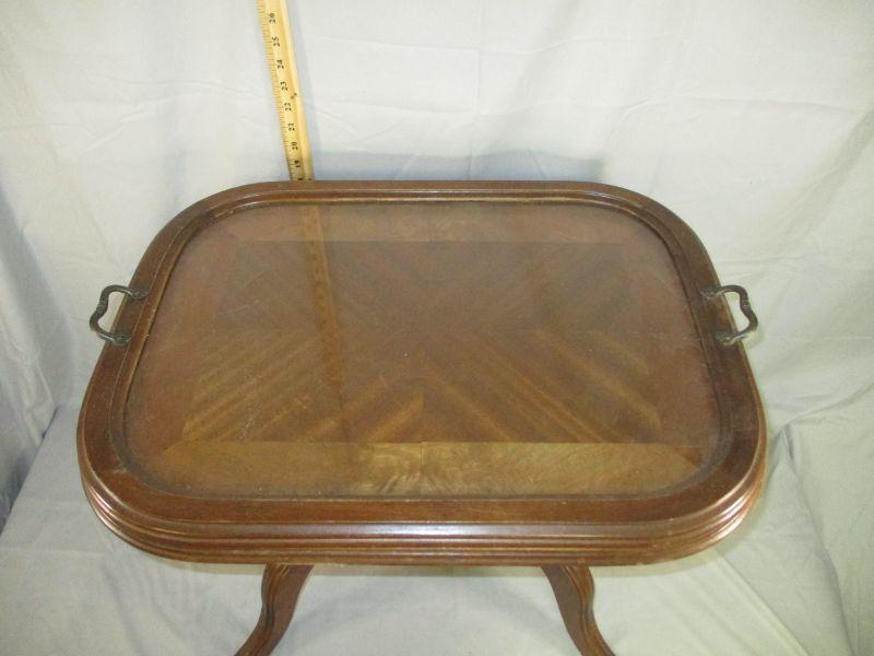 Lot 4 - Antique Tray Top Side Table LOCAL PICKUP ONLY