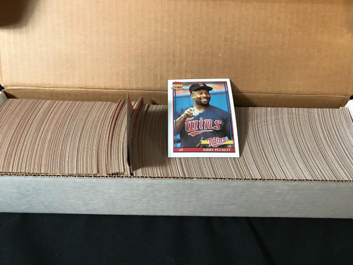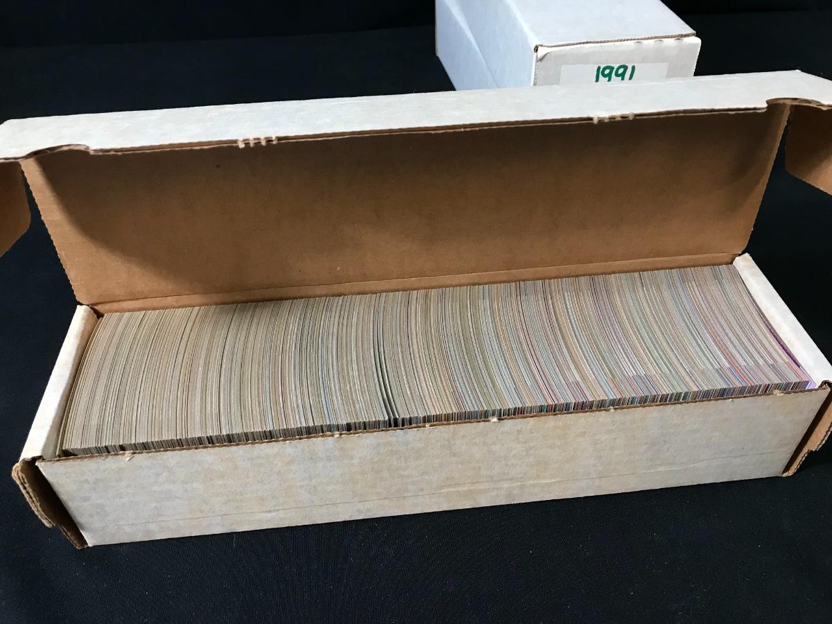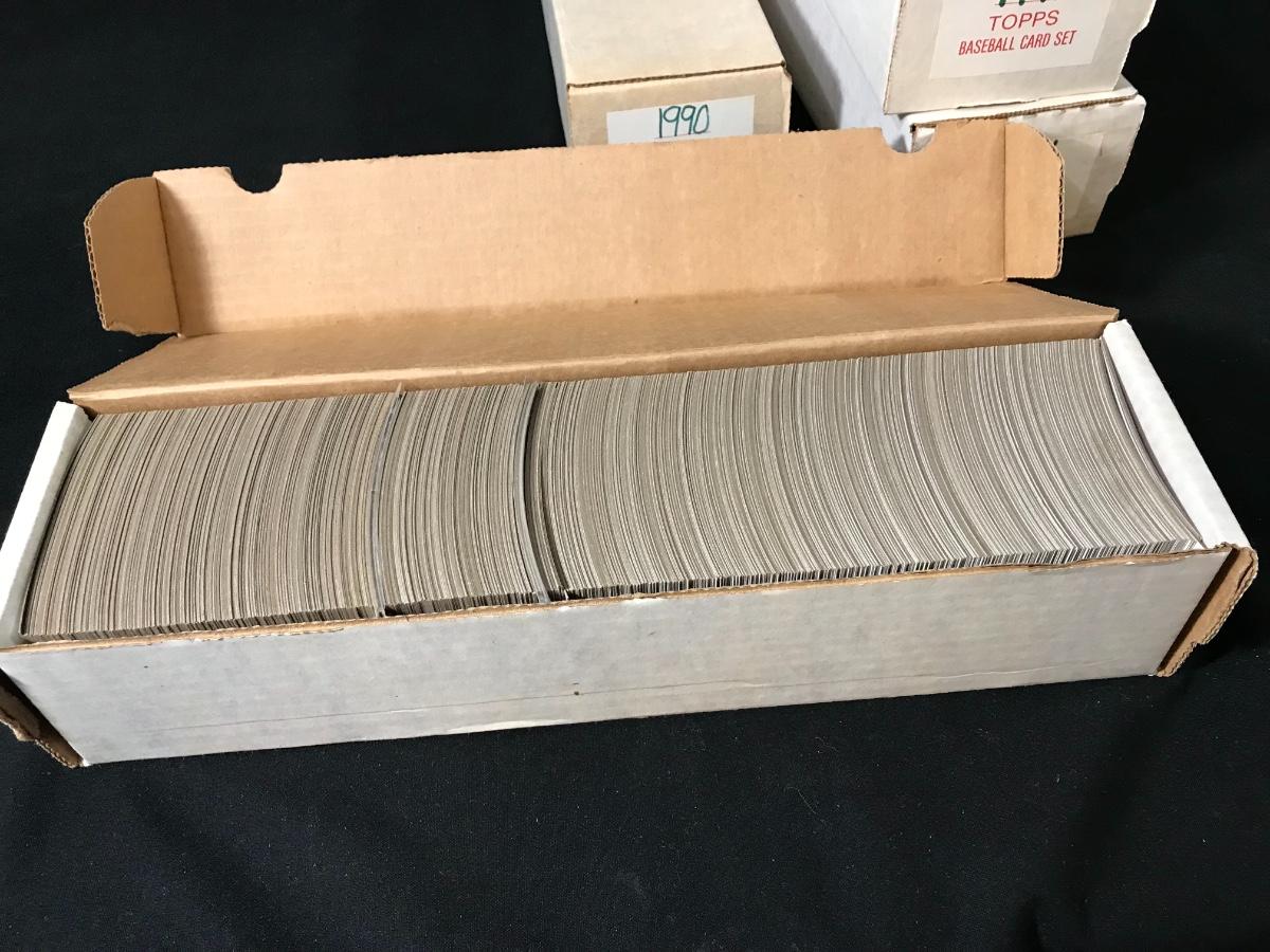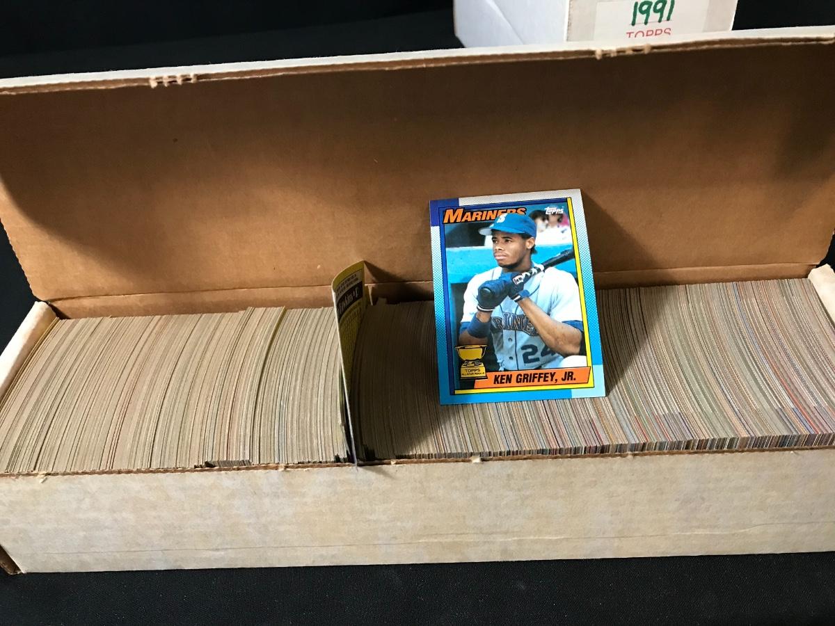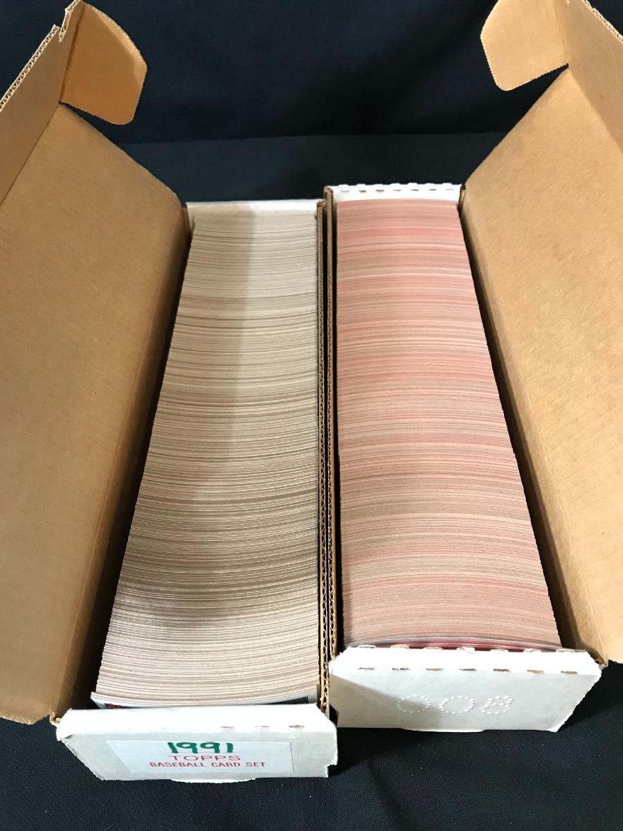 Baseball Cards - Season Sets - All Topps 1987-1991. One set each 1987 through 1990 and two 1991 sets. Cannot verify that sets are fully complete, as the boxes are not sealed, but each box is full, and key star rookie cards are present- Barry Bonds, Ken Griffey Jr. Etc. Cards have a slight curve to them, but not creased. Please see all pictures as they are the best representation of the items. The pictures show condition, measurements if taken, and what is included in the lot. Due to the large amount that we photograph and the time frame, we are not always able to take measurements. All items unless noted, are pre-owned and have been used. Please bring packing materials for your items. If you purchased furniture, you must bring help. We do not allow one person to carry large furniture out on their own. Bring help, tools and a truck for your personal safety. Company policy. Thank you.