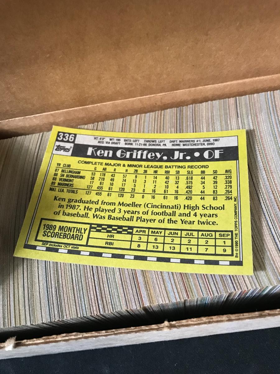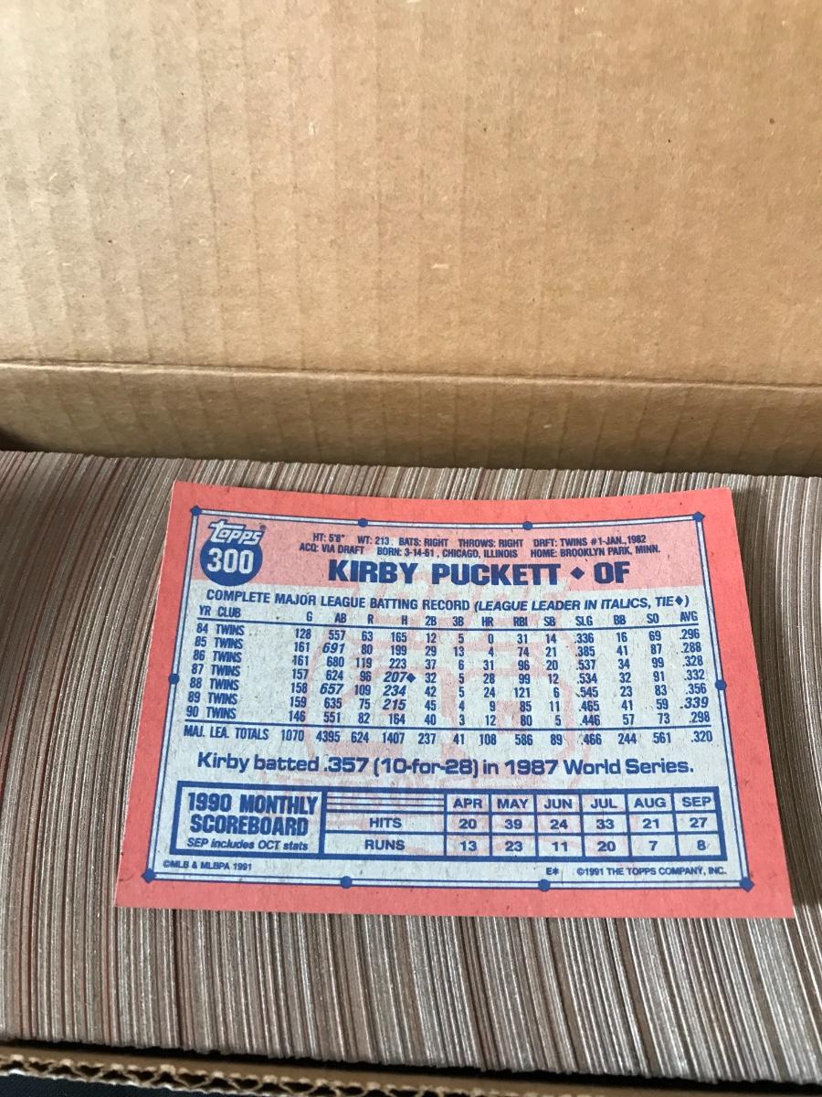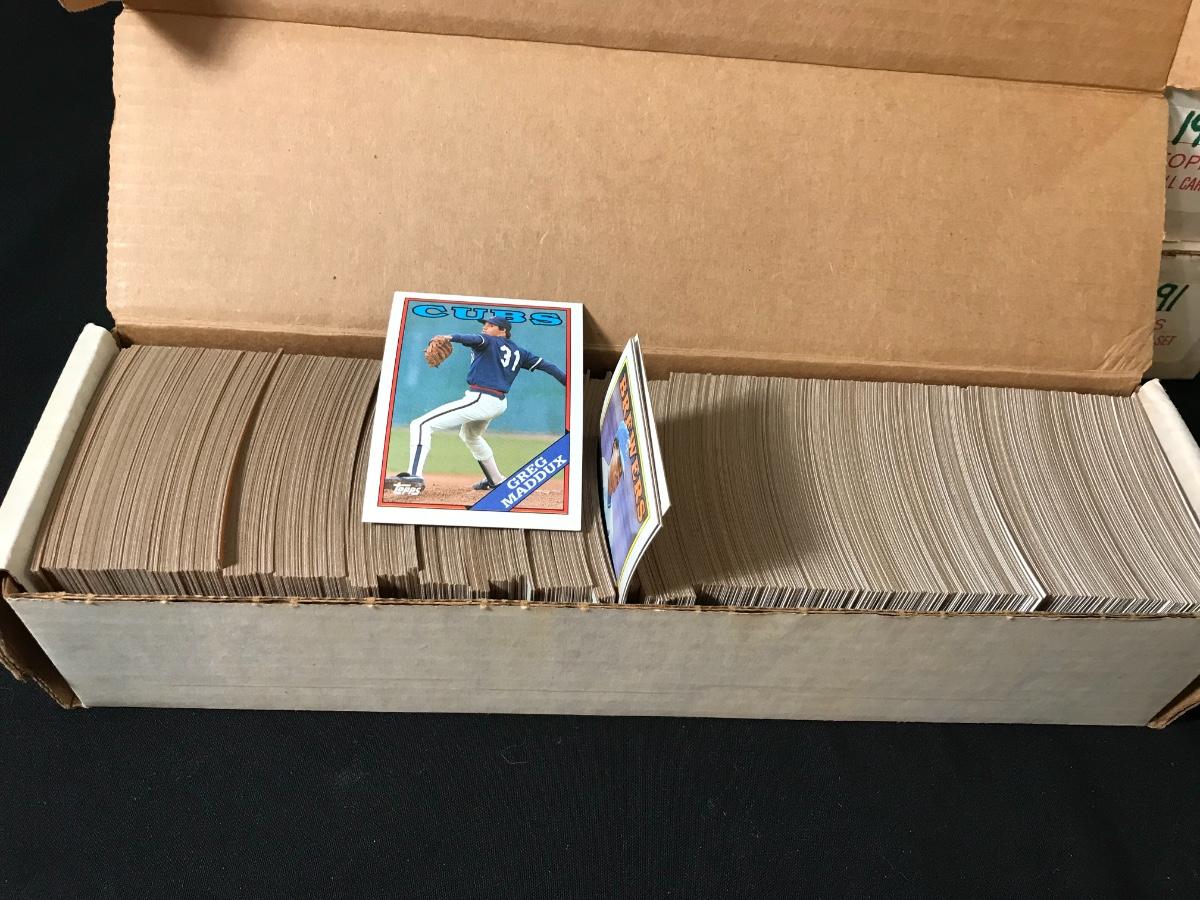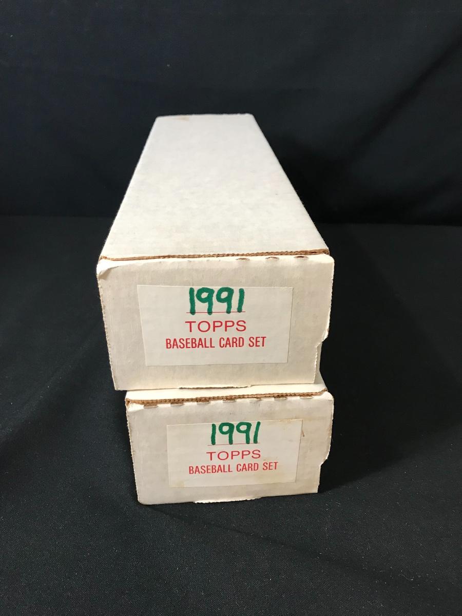 Baseball Cards - Season Sets - All Topps 1987-1991. One set each 1987 through 1990 and two 1991 sets. Cannot verify that sets are fully complete, as the boxes are not sealed, but each box is full, and key star rookie cards are present- Barry Bonds, Ken Griffey Jr. Etc. Cards have a slight curve to them, but not creased. Please see all pictures as they are the best representation of the items. The pictures show condition, measurements if taken, and what is included in the lot. Due to the large amount that we photograph and the time frame, we are not always able to take measurements. All items unless noted, are pre-owned and have been used. Please bring packing materials for your items. If you purchased furniture, you must bring help. We do not allow one person to carry large furniture out on their own. Bring help, tools and a truck for your personal safety. Company policy. Thank you.