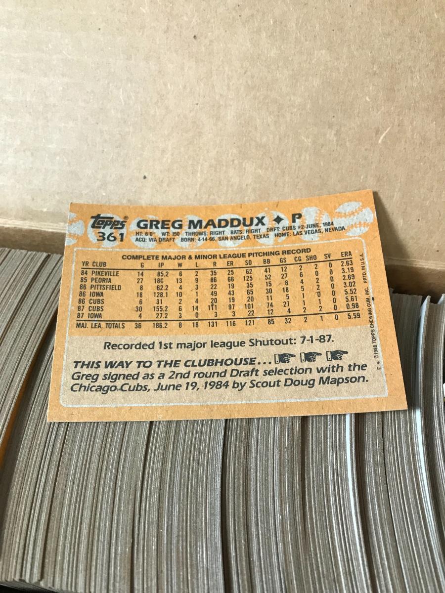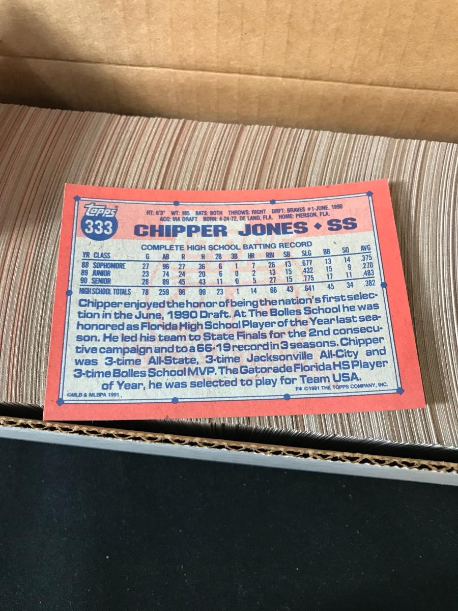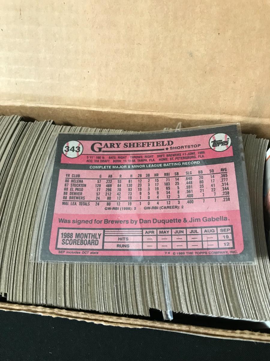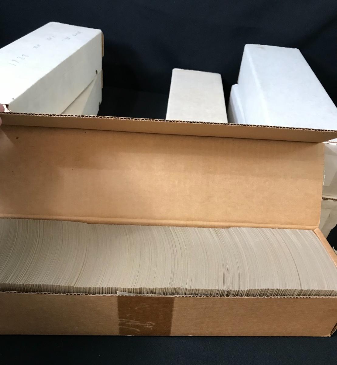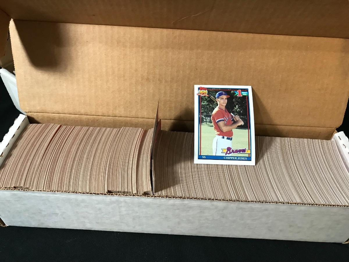 Baseball Cards - Season Sets - All Topps 1987-1991. One set each 1987 through 1990 and two 1991 sets. Cannot verify that sets are fully complete, as the boxes are not sealed, but each box is full, and key star rookie cards are present- Barry Bonds, Ken Griffey Jr. Etc. Cards have a slight curve to them, but not creased. Please see all pictures as they are the best representation of the items. The pictures show condition, measurements if taken, and what is included in the lot. Due to the large amount that we photograph and the time frame, we are not always able to take measurements. All items unless noted, are pre-owned and have been used. Please bring packing materials for your items. If you purchased furniture, you must bring help. We do not allow one person to carry large furniture out on their own. Bring help, tools and a truck for your personal safety. Company policy. Thank you.