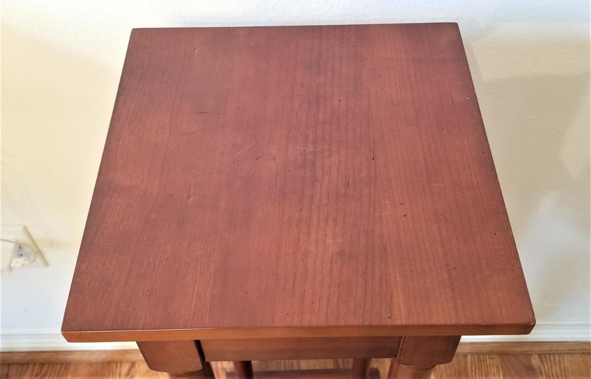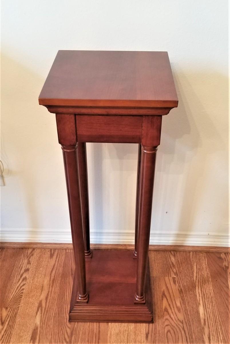 Attractive contemporary pedestal table - Bombay Company. Top is 11.5" x 11.5", stands 33" tall. Good used condition.