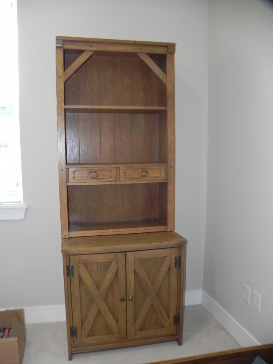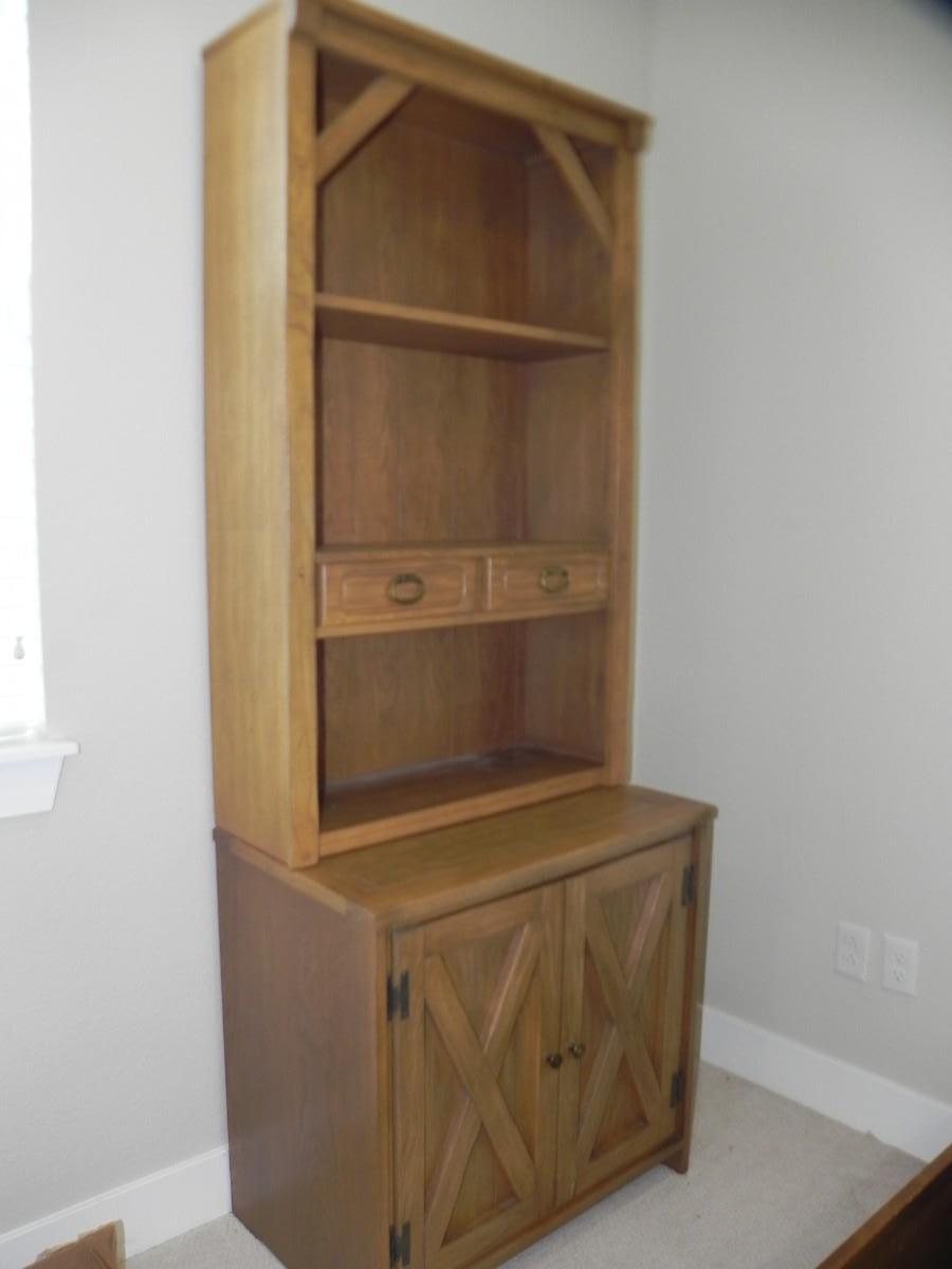 MEASURES 30X17X78 WOODEN HUTCH WITH SHELVING, 2 DRAWERS AND STORAGE ON THE BOTTOM, IN GREAT CONDITION