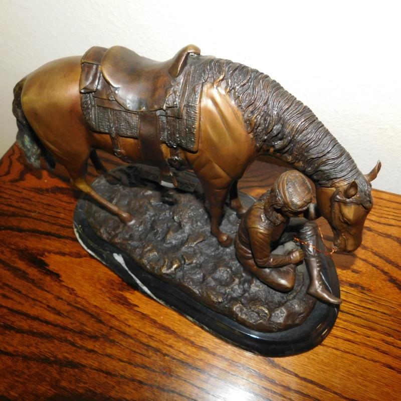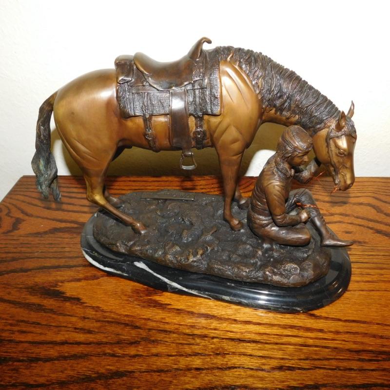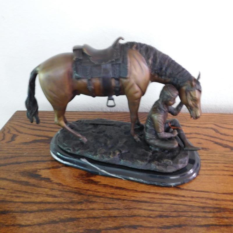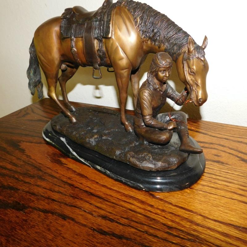 LOT 4 BRONZE TABLE TOP STATUTE GIRL WITH HORSE