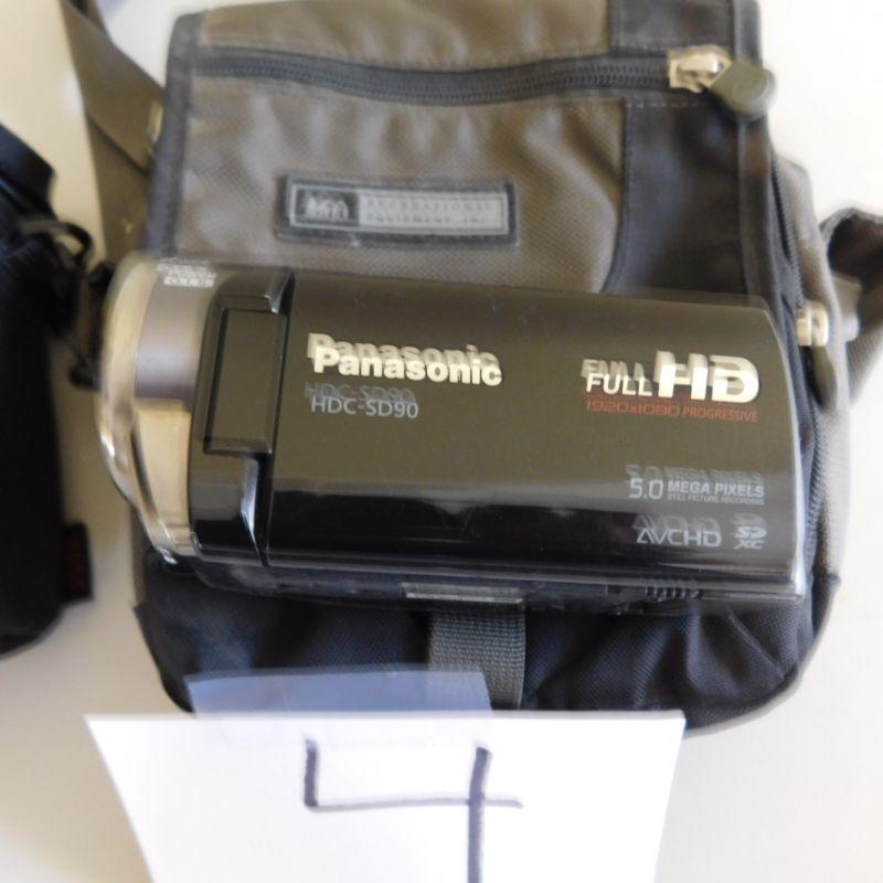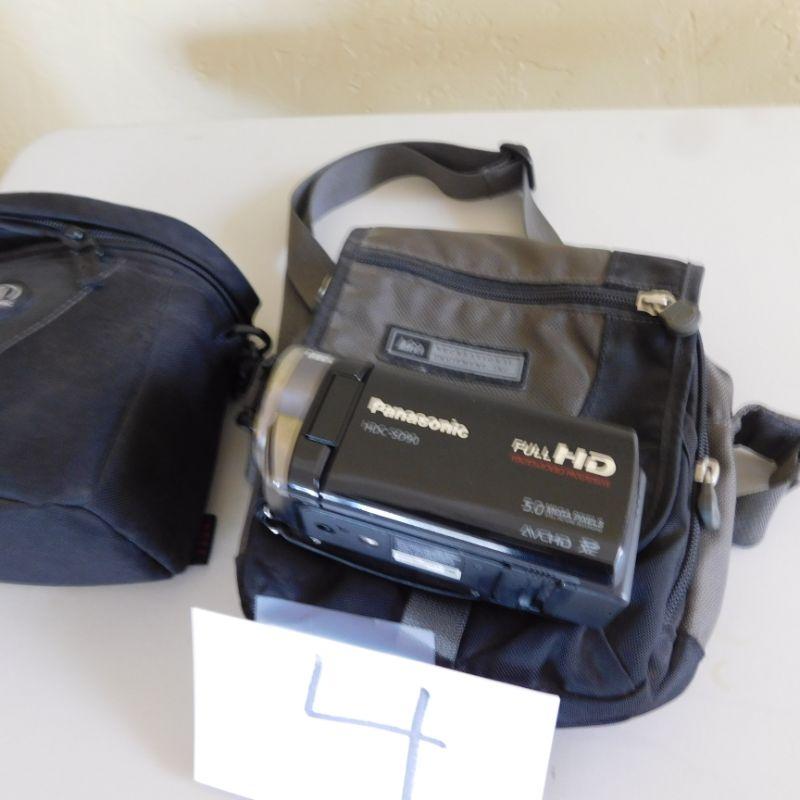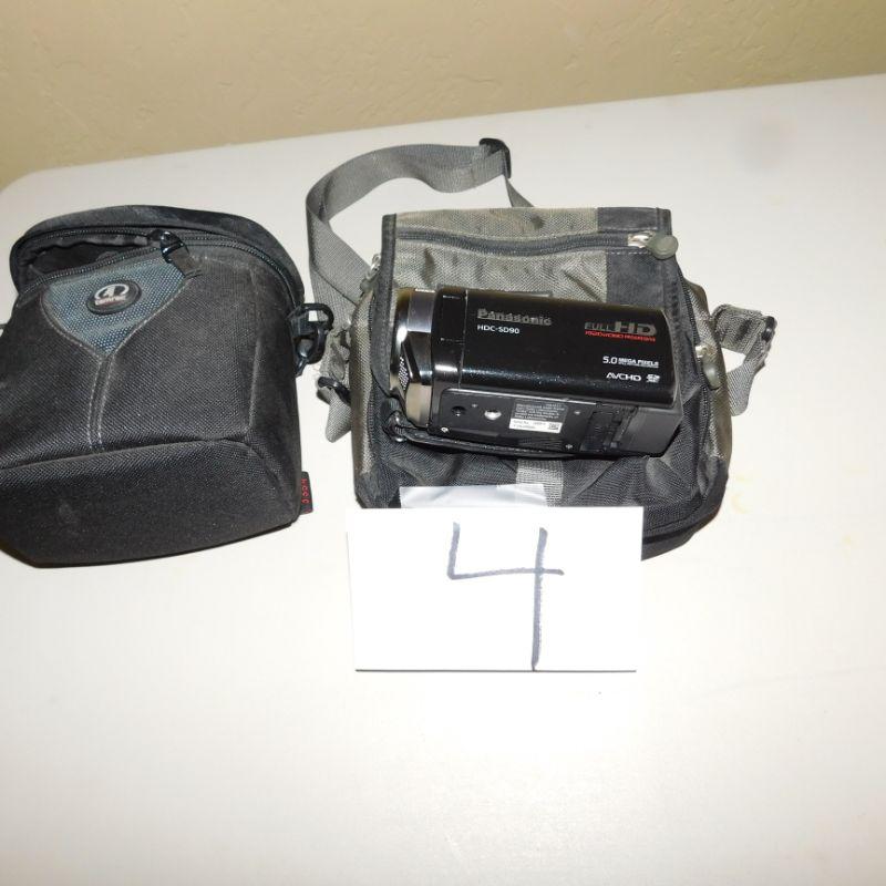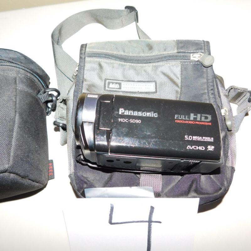 Lot 4 camera bags and a Panasonic HDCSD 90 video camera