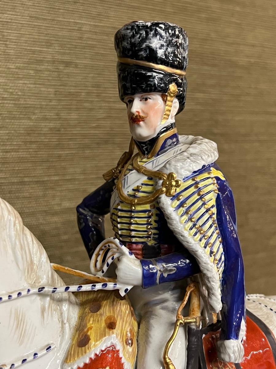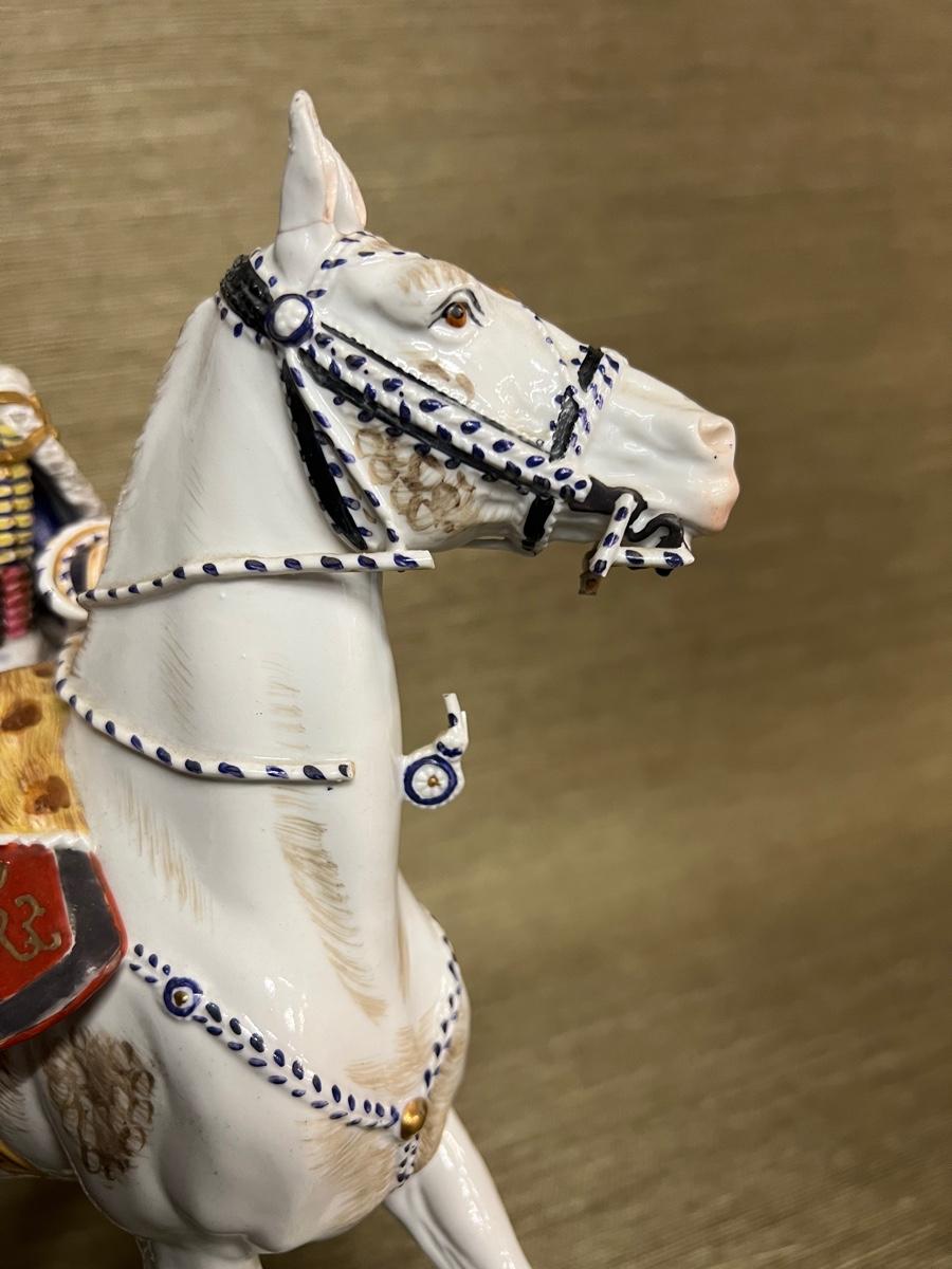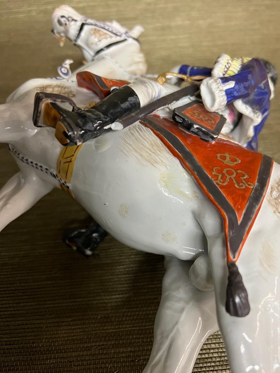 LOT 4 - Capodimonte "N" Crown Pottery featuring Napoleon. This is a beautiful piece that does have some damage. The reins have some breaks as does a piece near his boot.