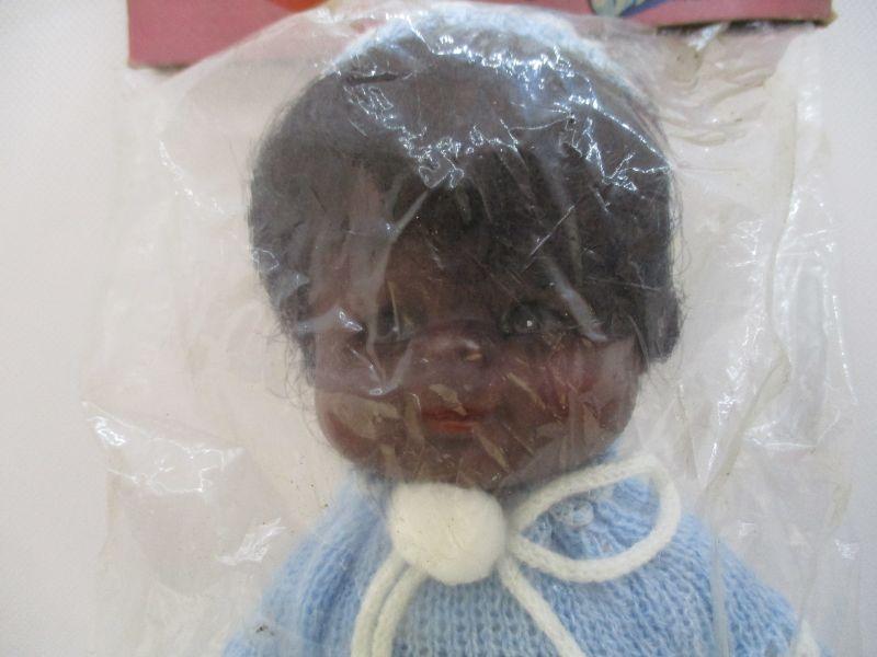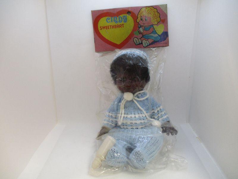 This beauty was made in Hong Kong is a soft plastic. She is about 10.5" tall and is bendable at the shoulders and hips. She is still in her original packaging. She has her own baby bottle.