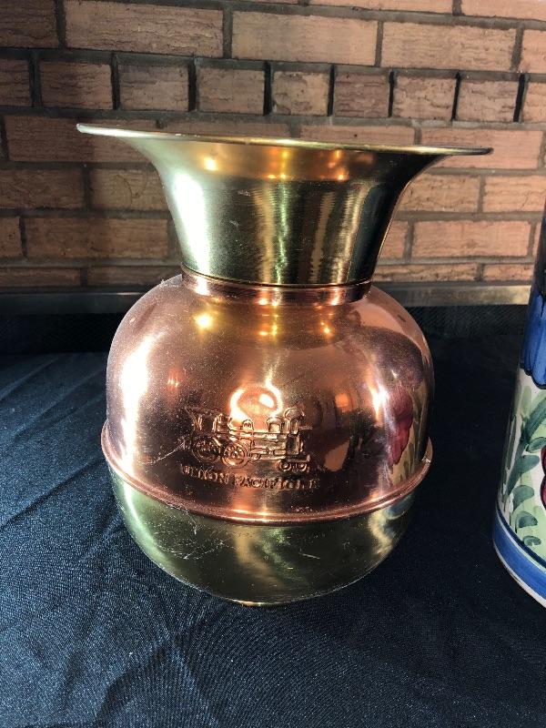 Metal - Copper? - Union Pacific RR Vase/Urn - 11" X 9" round