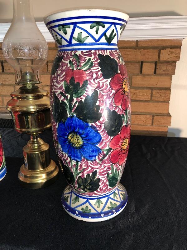 Large Red/Blue flower vase - Made in Spain 18.5" Tall