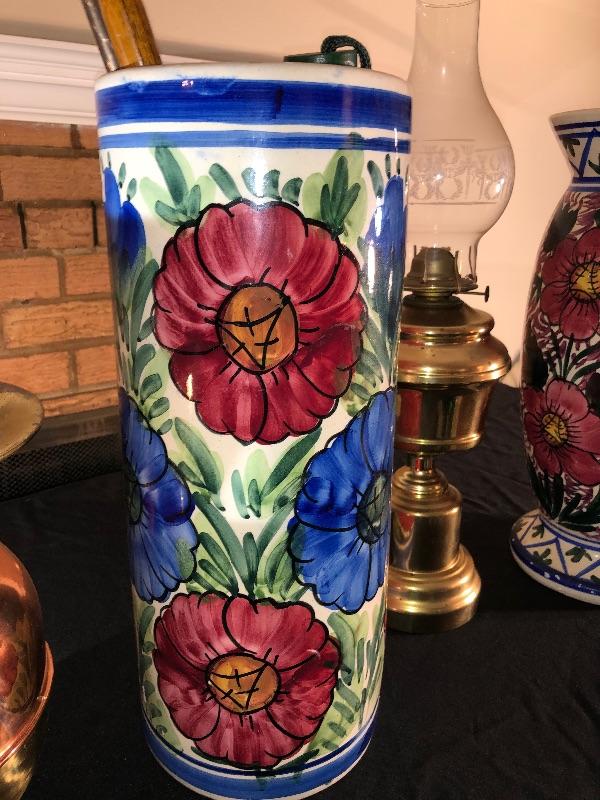 Large Red/Blue flower umbrella stand - Made in Spain 18.5" Tall