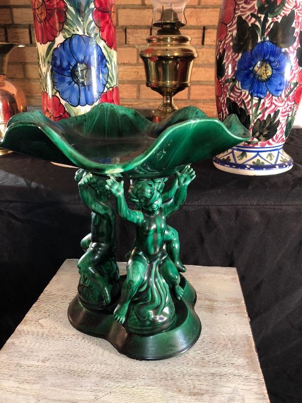 Green Cherub Platter - 12 1/2" Tall (Has damage on one side as shown in pictures)