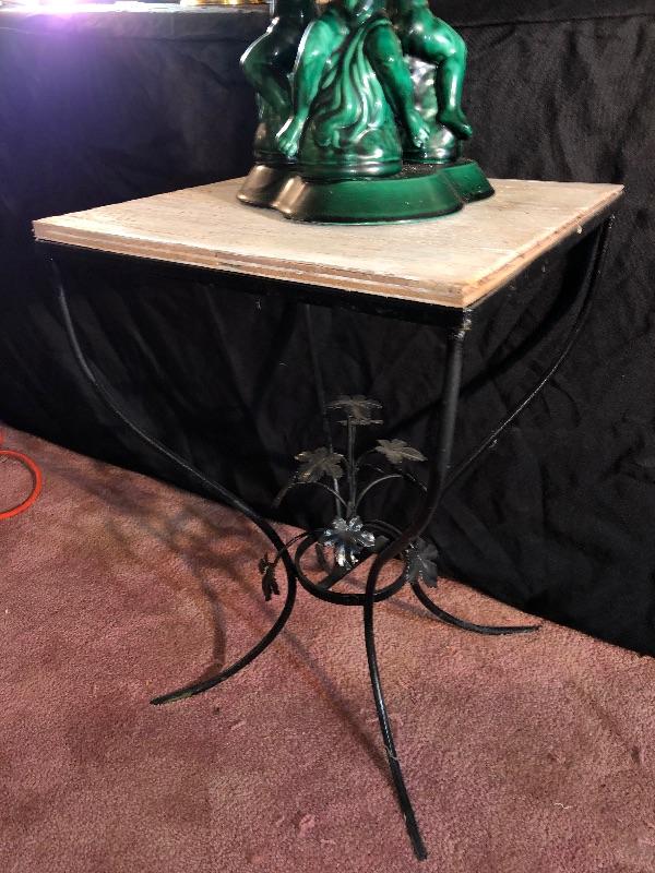 *Small accent table - Wood and metal with flower detail - 14.5" x 14" x 22"Tall