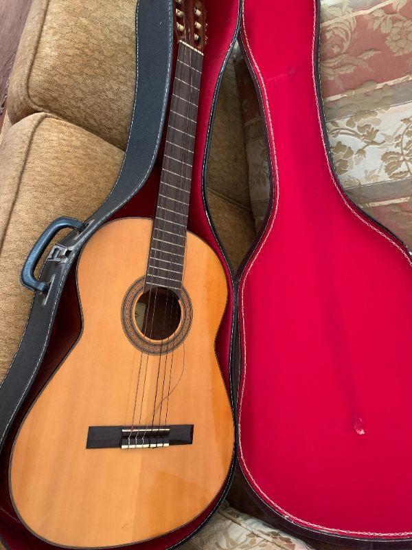 CONN Acoustic Guitar, 6 strings, made in Japan. 39.5" tall. Case coming apart.