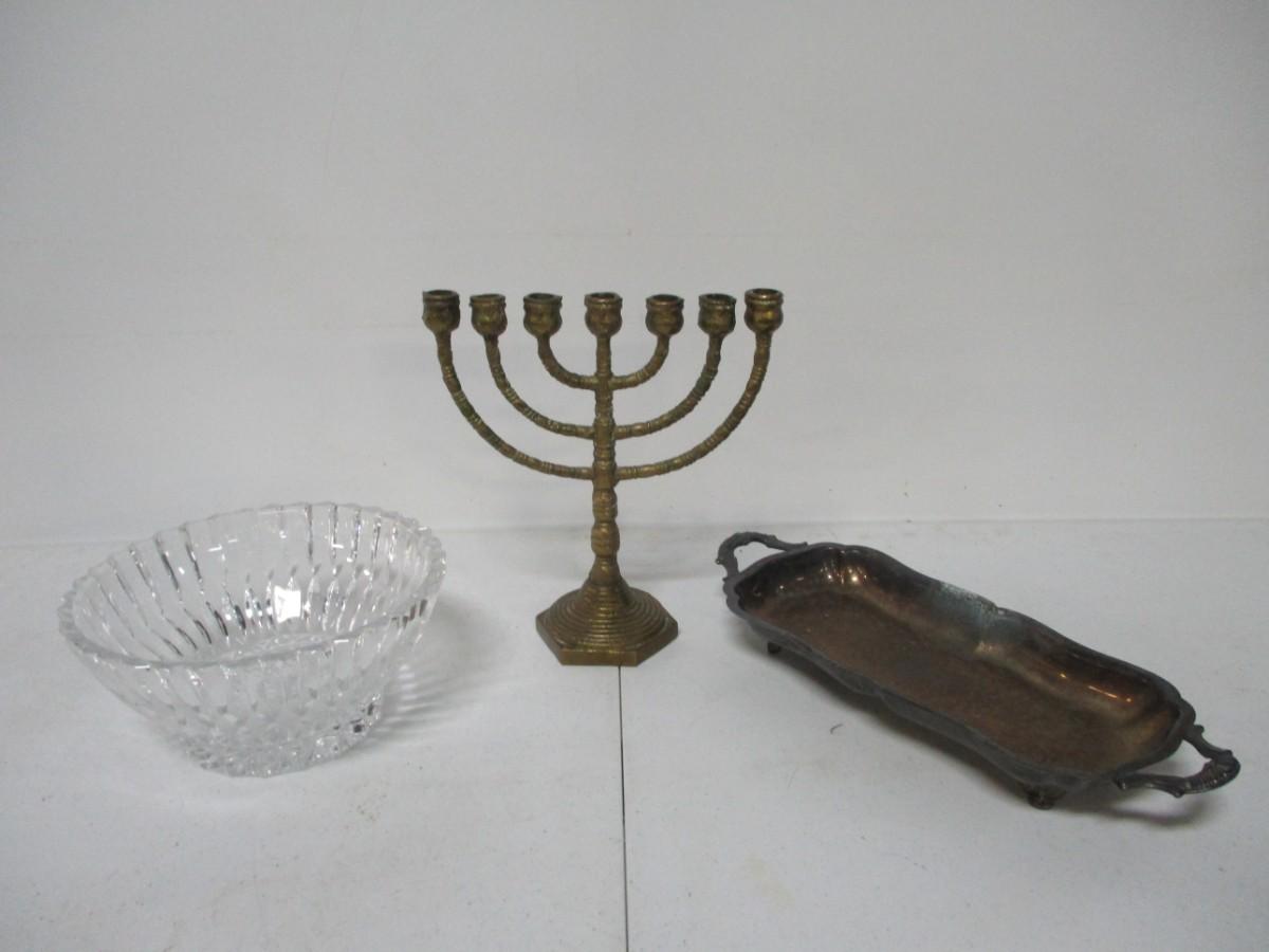 Lot 4 - Crystal Candy Dish - Platter - Brass Menorah