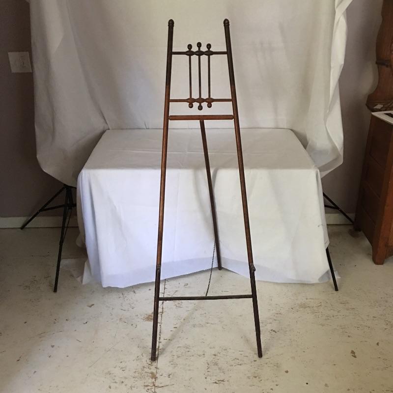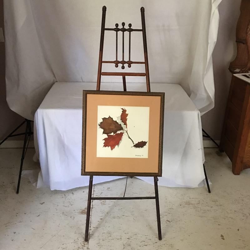 Lovely wooden easel to display your art or hold your working canvas. If you don't have any art worth displaying then use this lovely framed artwork by Mr. Stoneberg.. Great piece for your studio or anywhere else in your home or office. Easel measures 61.5” tall and can collapse for storage.