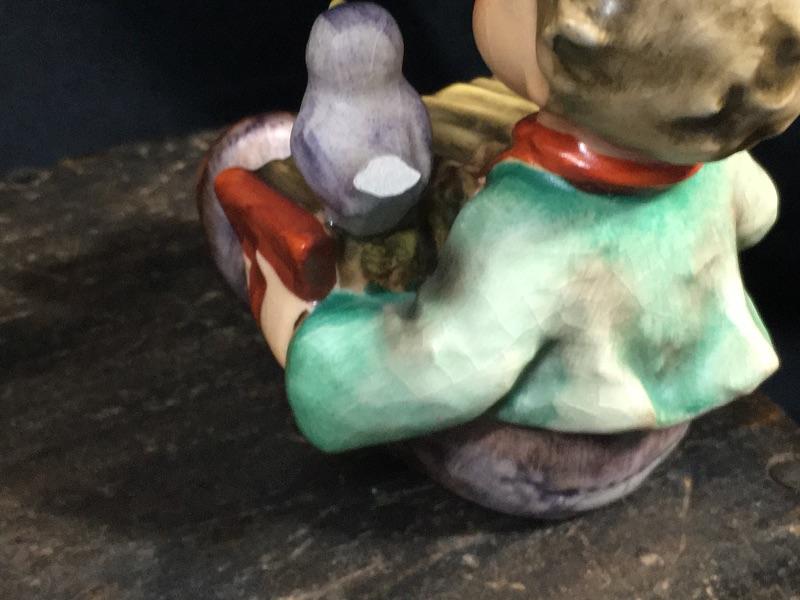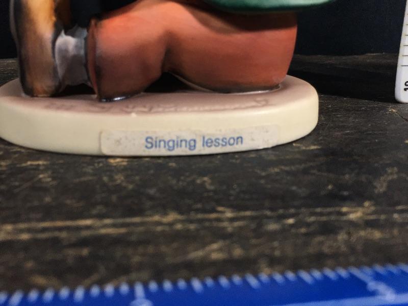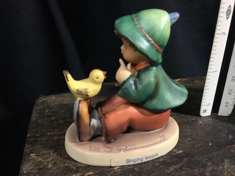 This beautiful pair of Hummels contains Hummel #110/0 “Let’s Sing” and Hummel #63 “Singing Lesson”. “Let’s Sing” has light crazing in different spots around the figure and has a noticeable chip on the tail of the bird. “Singing Lesson” is in mint condition with no crazing on it at all.