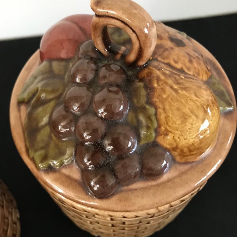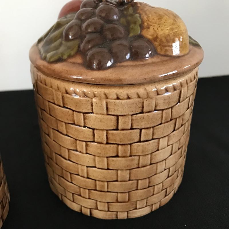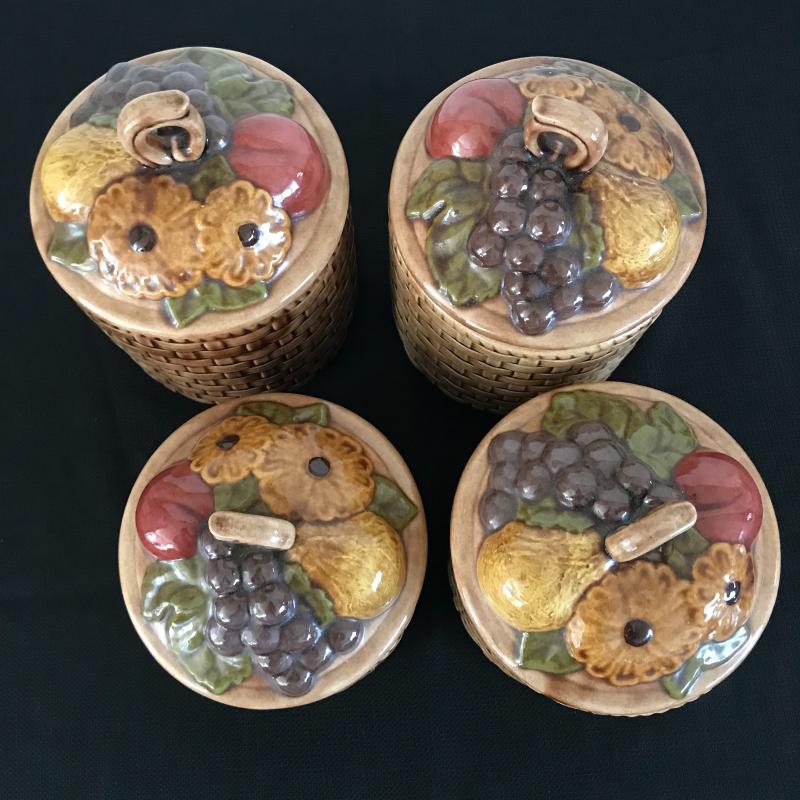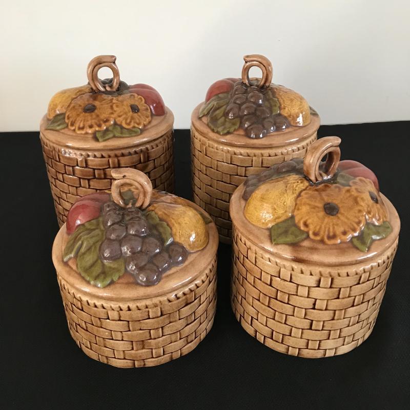 Set of four vintage kitchen canisters, in good condition. Tallest one is approx. 8” tall. No markings. Shipping available or local pickup in Asheville, NC.