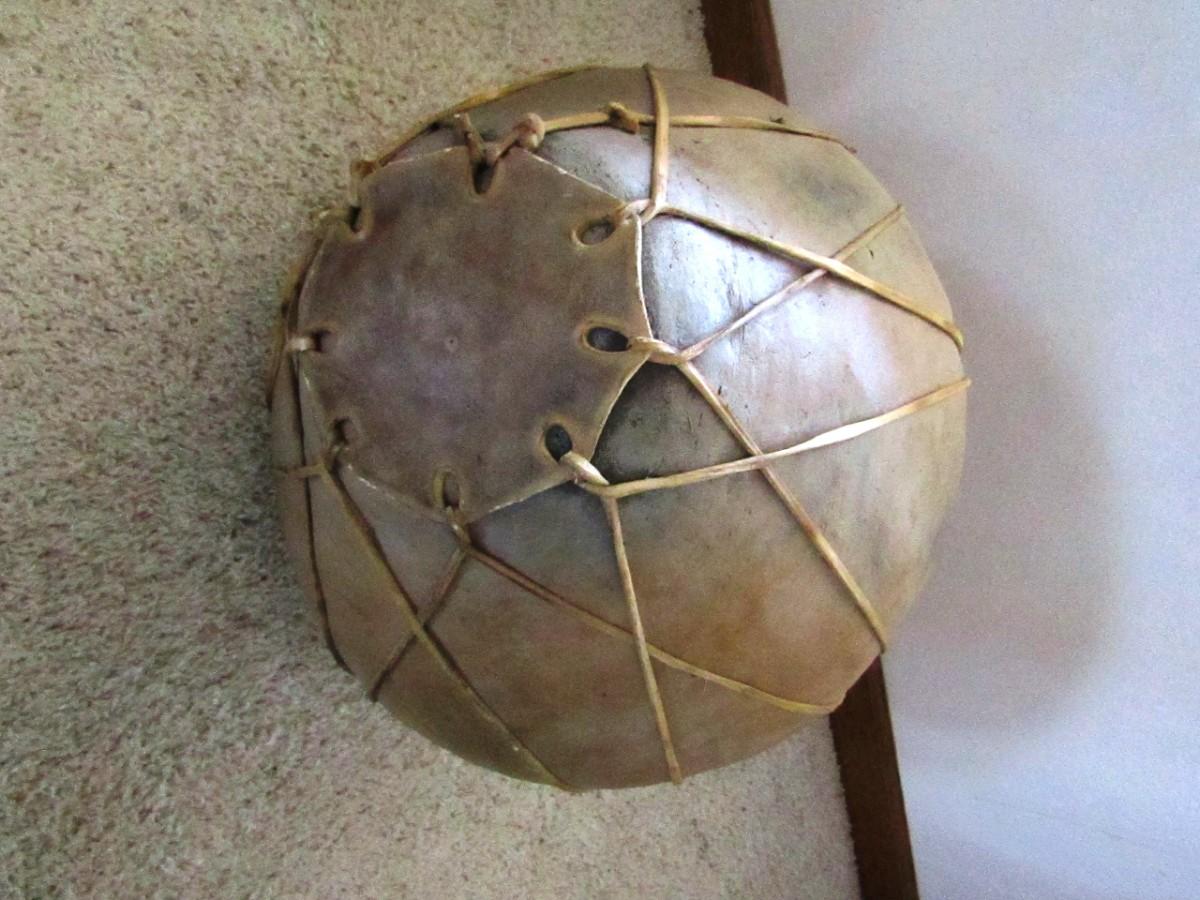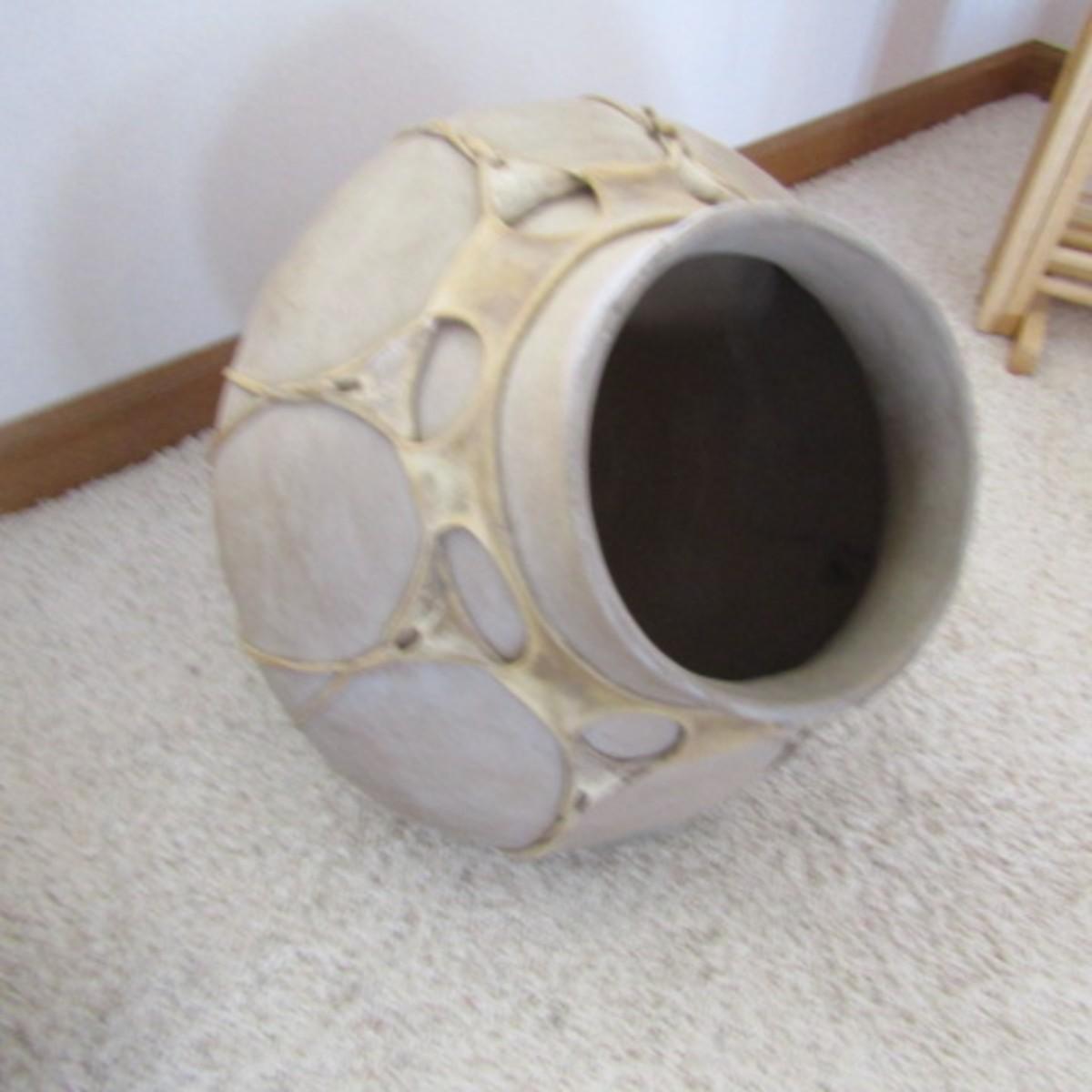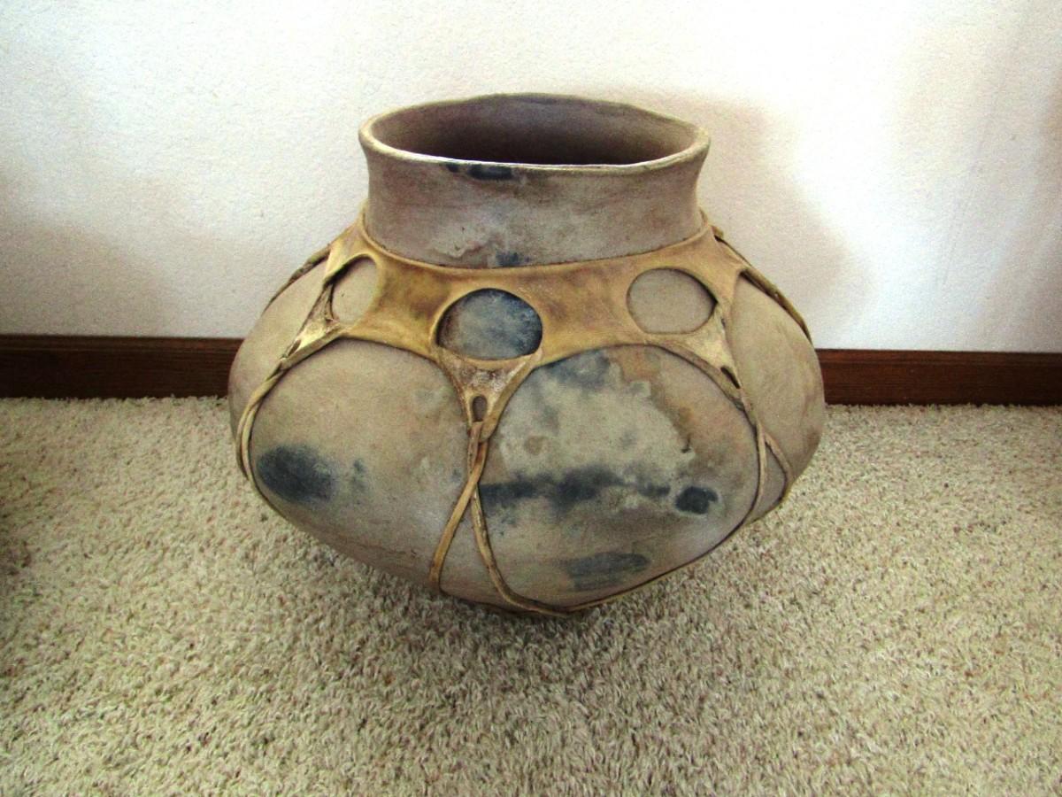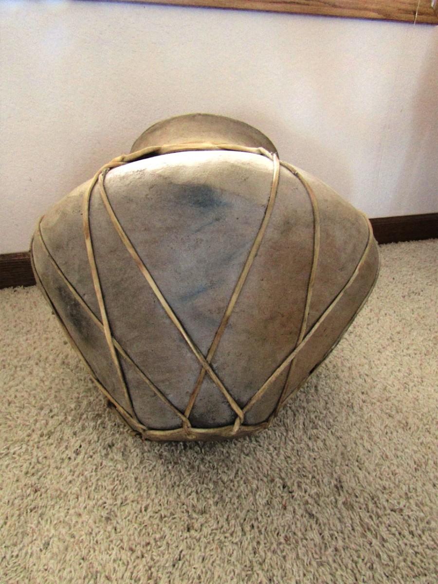 LOT 4  LARGE CLAY POT WRAPPED IN RAWHIDE (E)